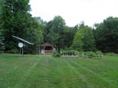 New York wooded land with turn-key off grid cabin, outbuildings, stream, trails, pond and adjoins NY State Forest for Sale. The ‘Pine Cone Lodge’ property, with its white marble stone driveway bordered by a cedar split rail fence, bountiful fruit orchard and vegetable garden, adjacent to the well-maintained and neatly landscaped main cabin, garage and guest cabin, initially struck me as a modern-day version of an Adirondack Great Camp. This 119-acre property and the 1,732 square foot, off-grid home (built in 2009) was originally intended to serve as a seasonal recreational/hunting camp for the Christopher’s family and friends. As the years passed and improvements continued, they decided to make this ‘oasis in the woods’ their three-season home.The one story, 3-bedroom, 2 bath, main cabin and 3-bay garage were constructed using 2” x 6” framing lumber with fiberglass insulation and exterior log siding, resulting in the cabin style look they desired with a higher insulating value. The major source of heat is the woodstove located in the open concept design great room. A propane wall mounted heater is a reliable backup when only a slight chill is in the air. Propane is used for refrigeration, hot water, clothes drying, cooking and backup power generation. In addition, propane wall lamps are located in every room. A 15-kilowatt solar system, with State-of-the-Art controls, provides more than enough power to meet current electric needs. A 385’ deep well provides cold, crystal clear water, not requiring any form of treatment. The open, covered, front porch and partially shaded rear deck with barbecue, are handy for entertaining friends and family. Interior finishes are a combination of hardwood and ceramic floors, tongue and groove pine cathedral ceiling in the great room and painted sheetrock walls and ceilings throughout the remainder of the interior. This cabin is being sold fully furnished with the existing furniture and appliances (except for one bedroom set in bedroom two). The 288 square foot guest cabin with loft features solid log construction. It is fully wired for electric, has no plumbing or heat, and the interior is partially finished. The owners plan to continue working on the cabin interior. All of the machinery and implements required to maintain the property is included with the sale and conveniently stored in a 3-bay, 1,200 square foot utility and storage building found within sight of the cabin. This includes all of the equipment to cultivate food plots used to attract additional wildlife. A description of this equipment is found under ‘Machinery & Accessories’ in this listing. Pictures of these items are available upon request. The property was previously a sugar bush and is completely wooded except for a few beaver meadows along Kimball Creek where many wonders of nature are witnessed from a screened-in gazebo. It is a popular gathering place for family and friends to play cards, visit and barbecue. A timber harvest was conducted about 15 years ago by the previous owner which removed the majority of the mature timber. The predominant species found on the property include: sugar and red maple, black cherry, yellow birch, white ash, beech and hemlock. Most of the residual trees present are in the sapling, pole and small sawtimber size classes and appear to be doing well. Many of the skid trails created during the harvest are in great shape and make excellent x-country skiing, snow-shoeing, snowmobiling, hunting, hiking and ATV trails. This property is very productive for big game hunting. Seven food plots were developed across the parcel as a result of the owner’s appreciation for deer hunting, especially by bow. Forage crops planted include; clover, chicory, soybean, burnet and brassica. Based on the abundance of both native and planted food resources, water, cover, and physical evidence, whitetail deer, black bear, snowshoe rabbit, ruffed grouse, turkey, fisher, bobcats, coyotes and a mixed bag of waterfowl either live on or frequent the property. Family and friends that hunt venture to the back side of the property adjacent to State land and ‘rough it’ in the small hunting camp located there. Access to the property is via Powerline Drive, a private deeded R-O-W, approximately .7 miles in length from the French Settlement Road. A neighboring year ‘round resident currently plows this portion of the road, as well as the owner’s driveway during the winter months. The 20,412-acre Jadwin Memorial State Forest borders the property on the western boundary along Kimball Creek, greatly expanding the recreational area available to the owner. Kimball is a year ‘round trout stream which flows through the southwestern portion of the property. The owner installed a bridge to cross the stream in that area for ease of access to the State land. Access to both snowmobile and ATV trails is just minutes away. The French Settlement Road is open to both ATV and Snowmobile traffic. Last but not least, the owners prepare for their winter sport of Shuffleboard on their own personal court, complete with pergolas, located behind the car garage. This uniquely private, off-grid homestead offers all the amenities needed for new owners to remotely work and play on the same property, or possibly just enjoy a ‘living off the land’ sustainable lifestyle. It would be an ideal property for a family or group that are captivated by nature and have been searching for the perfect location to safely enjoy a variety of outdoor activities. It is central to numerous popular destinations including; Canada, the St. Lawrence River/Thousand Islands, and the Adirondacks including the High Peaks region. The City of Watertown and its International Airport are roughly 35 and 45 minutes west respectively. This is a great opportunity to purchase an exceptional piece of recreational land with turn key home in Northern New York at a reasonable price!
