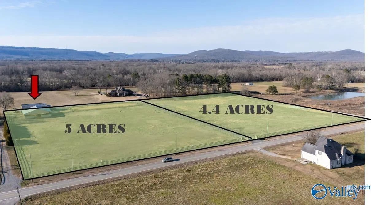 Nestled in the heart of North Alabama's scenic countryside 5 min from Hampton Cove & Robert Trent golf course, this expansive property offers the perfect blend of peaceful rural living & easy access to modern conveniences. Imagine building your custom dream home or homes on either of the two parcels(5 acre & 4.4), with ample room to create the lifestyle you've always envisioned-whether that's a spacious family estate, equestrian set-up or add to existing one, or a private retreat with multi-generational haven. The 5 acre includes a functional 7 horse stall with tack room, enclosed & outdoor riding arena. There's a bathroom & space to lounge.