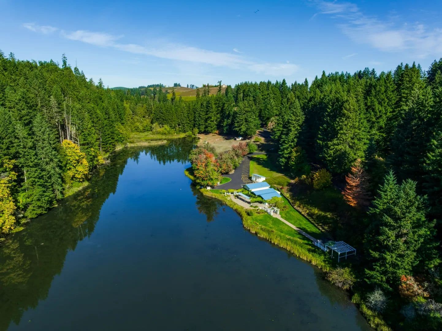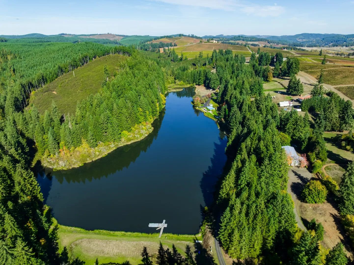 A rare offering in the heart of the Pacific Northwest. This remarkable 206.5-acre estate features its own 25-acre private lake and an exceptional blend of luxury living, natural beauty, and income-producing potential, all just 30 minutes from Eugene, Oregon. At the property’s center is an expansive, 25-acre private lake. Ideal for boating, fishing, swimming or paddleboarding. The activity center is the perfect setting for lake side gathering. Other recreational opportunities abound. With over 200 acres of land, one may indulge in hiking, biking, wildlife viewing, equestrian pursuits, and much more! The main dwelling boasts a beautifully appointed 3,400+ sq. ft. main residence showcasing 5 bedrooms and 3.5 baths. Thoughtfully designed and tastefully finished, the home offers spacious living areas, large windows capturing sweeping views, and an inviting atmosphere ideal for relaxing and entertaining. For those seeking business or lifestyle opportunities, the estate includes a 3,600 sq. ft. winery and tasting room, perfectly suited for wine production, private events, or expansion into a full hospitality venture. The land also features growing timber - a long-term investment that also enhances the property’s natural setting. Whether envisioned as a business opportunity, a primary residence, or a private retreat, this property offers unmatched versatility and serenity. Its proximity to Eugene ensures convenient access to city amenities while maintaining complete privacy and a true estate feel.