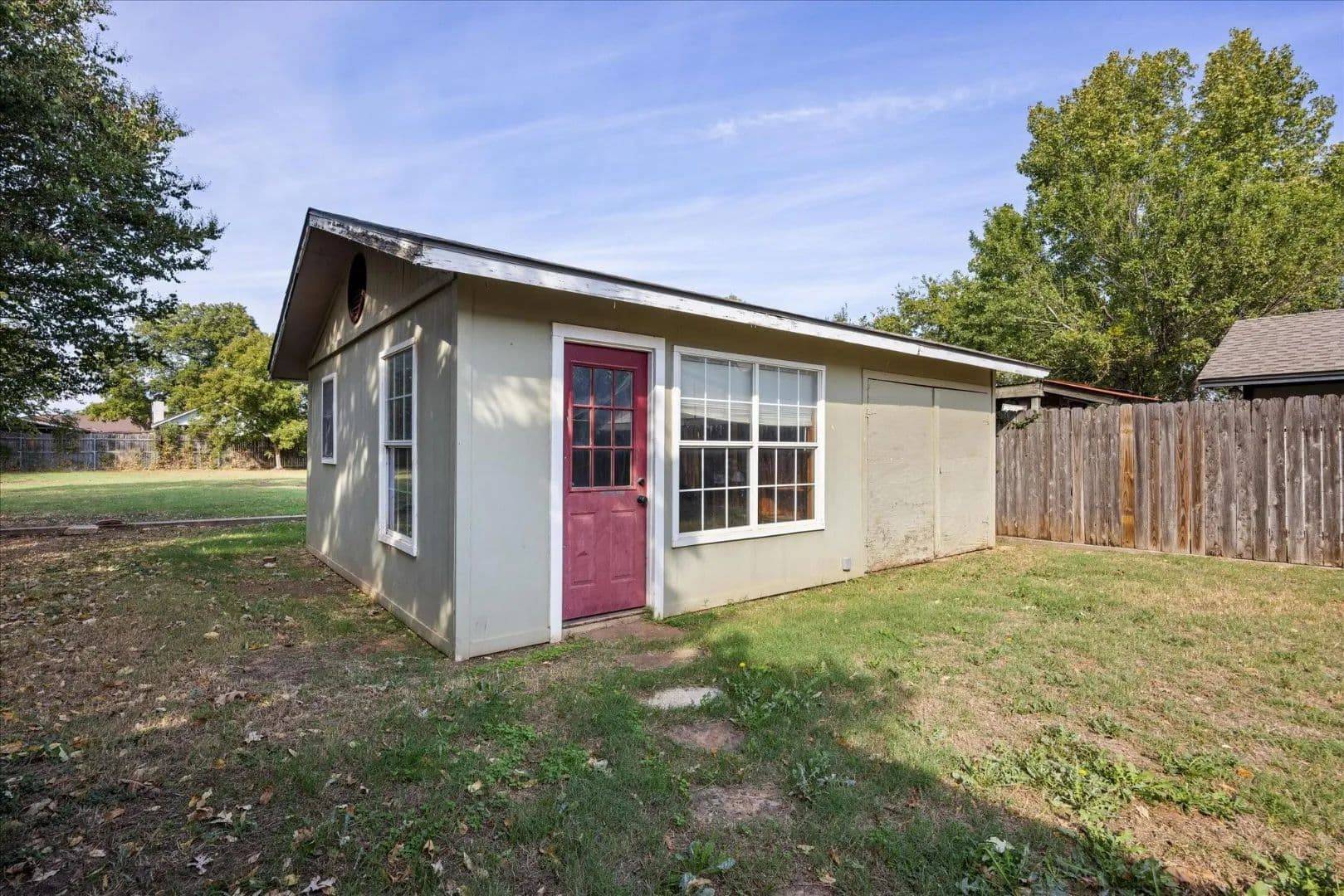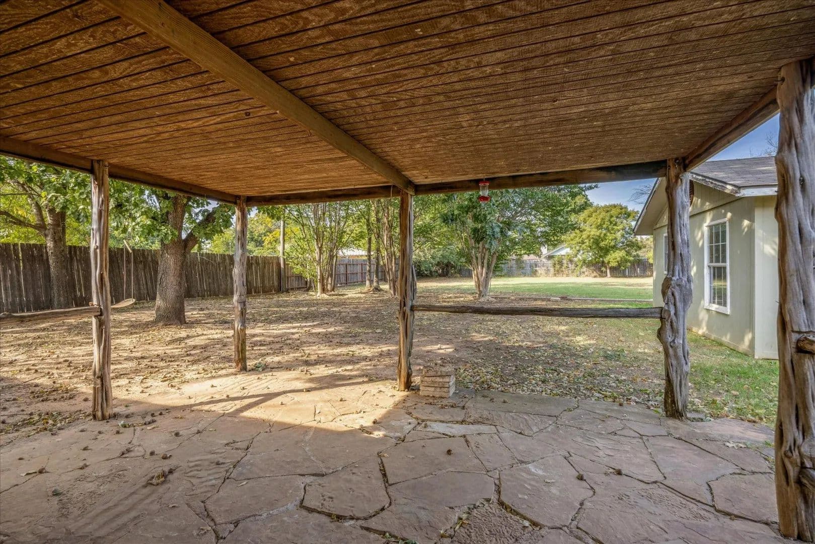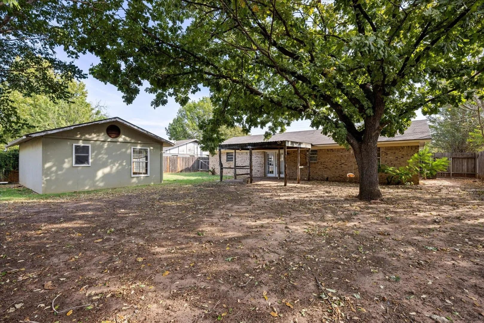 This classic brick home in Lipan offers small-town comfort with plenty of space to spread out. Built in 1976, the 3-bedroom, 1-bath layout features a bright living area with tile floors, neutral colors, and large windows that let in tons of natural light. The kitchen offers plenty of cabinet storage and counter space, while the updated bathroom brings a clean, modern touch. Step outside to a spacious backyard shaded by mature trees and enclosed with a wood privacy fence—perfect for relaxing, gardening, or entertaining. A covered patio with rustic cedar posts adds charm and character, and the detached accessory building provides extra room for storage, hobbies, or a workspace. Conveniently located close to Lipan schools, this home combines everyday functionality with that true hometown feel.
