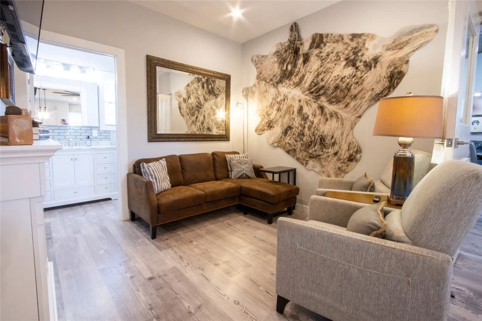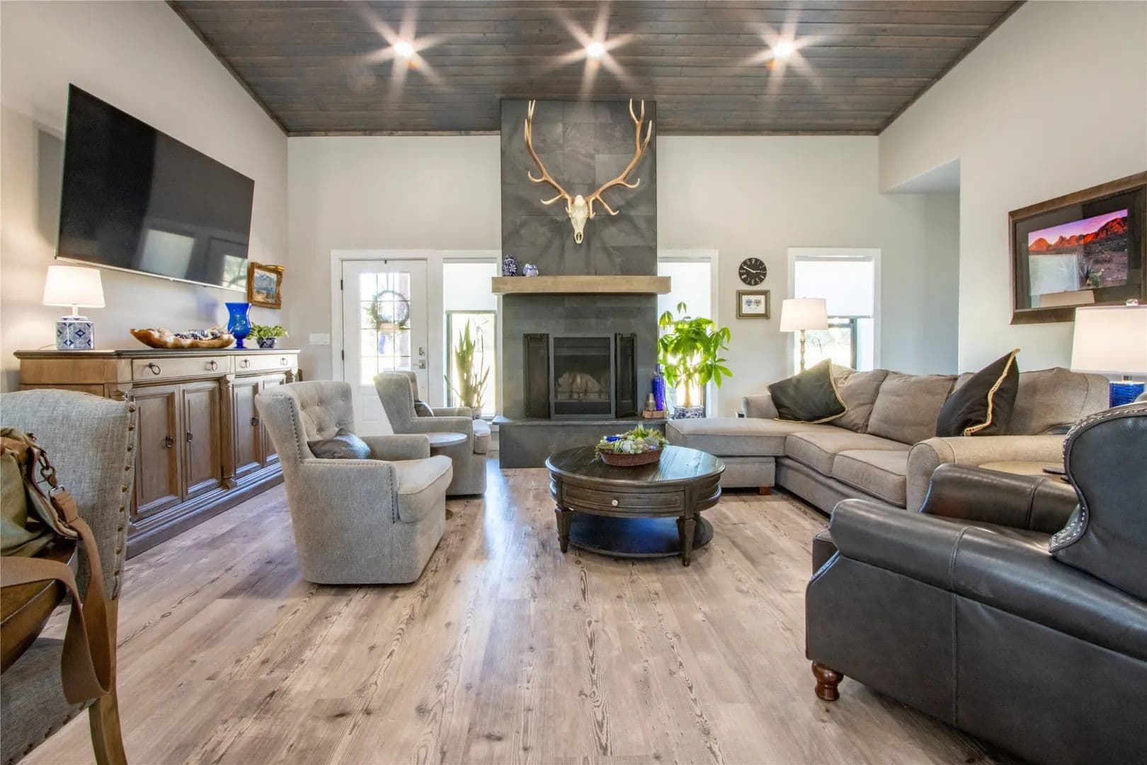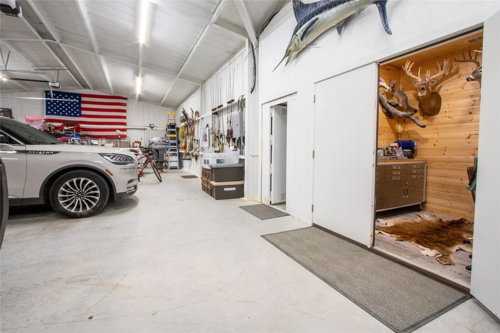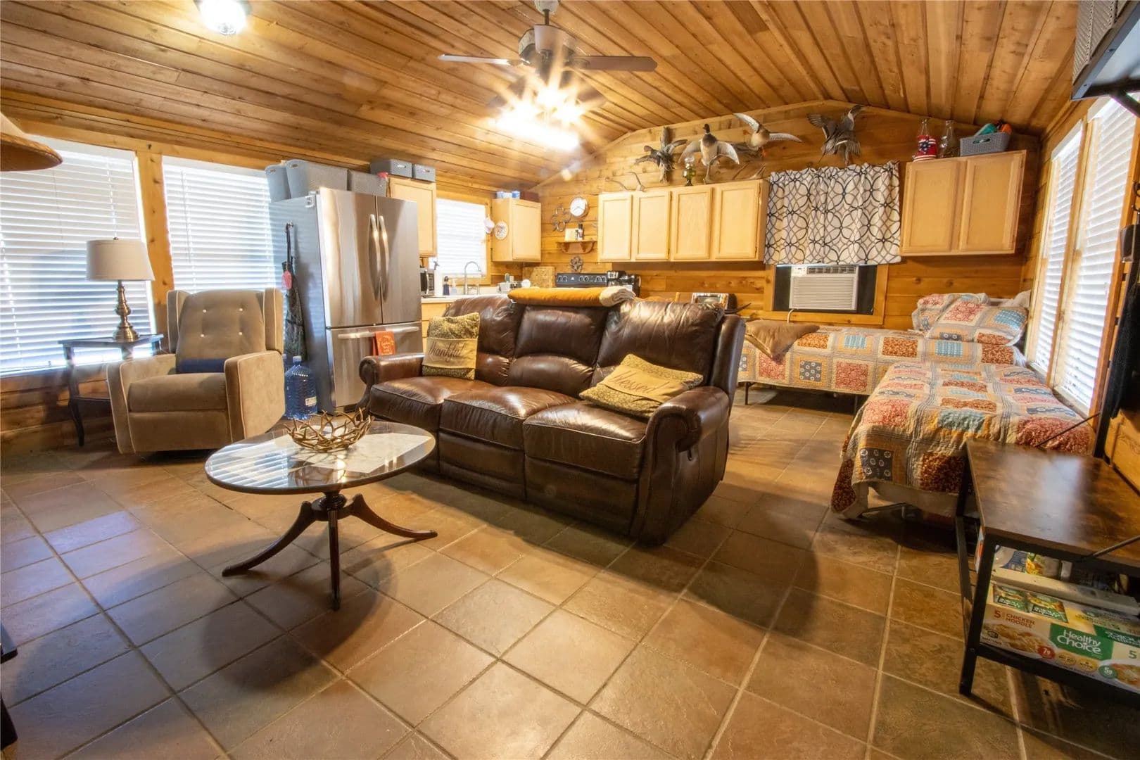 Exceptional turnkey 202 acre ranch with luxury improvements, stunning topography, and excellent wildlife habitat. The newly built 3,010 sqft barndominium offers 3 bedrooms, 2.5 baths, two full kitchens, and high-end finishes throughout. A massive 2,040 sq ft attached garage includes 4 parking bays, a reinforced safe room providing both secure storage and peace of mind, and a climate controlled loading room. The home operates on a rain-catchment system with filtration and a reserve tank, offering sustainable and independent living. Outdoor entertaining is elevated with a custom fire-pit area and two covered patios. A separate 640 sqft guest home features 1 bedroom, 1 bath, and a full kitchen ideal for guests, family, or ranch staff. The land showcases beautiful elevation changes, mature hardwoods, and diverse habitat supporting strong populations of whitetail, turkey, and hogs. Water features include three ponds, enhancing both recreation and wildlife. Private, scenic, and improved to a high standard. This property is turnkey and ready for immediate use—perfect for a recreational retreat, full-time ranch residence, or private family getaway. A rare offering in the Ranger area blending modern amenities with classic Texas ranch character.