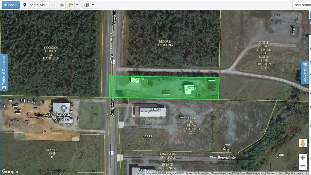Perfect location for a liquor store! 1.86 acres with two buildings (1440 sq. ft, and 2400 sq. ft) and plenty of land for storing equipment. Located on the east side of Highway 65 S, just 3 miles south of Bee Branch, AR. Perfect for an auto body repair shop, collision center, or any small business.
