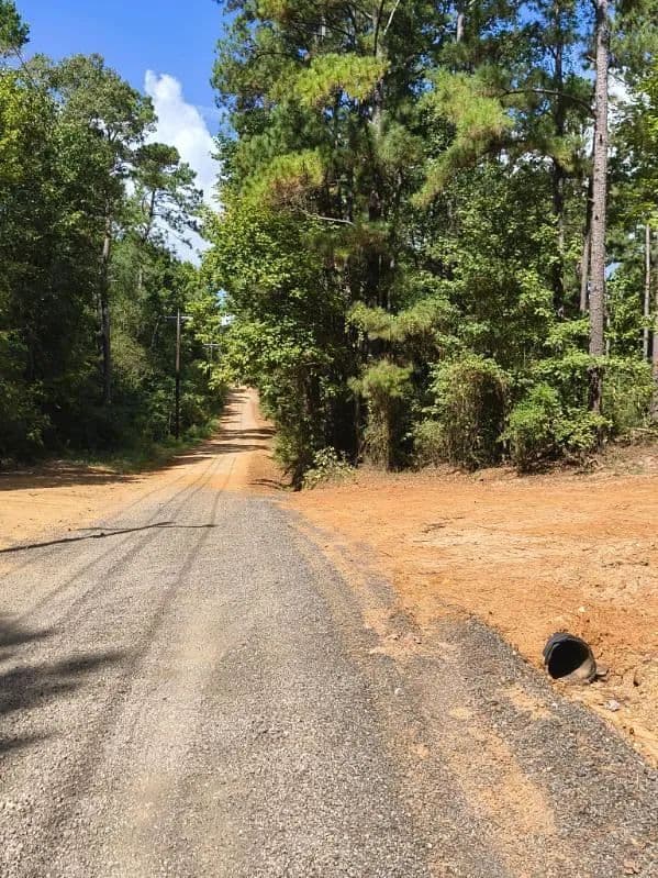 County road frontage with pine forest and a meandering creek in the back. Perfect for building a dream home in the woods. Water and electric are both available at the road. The property would need to be surveyed to get an exact acreage.