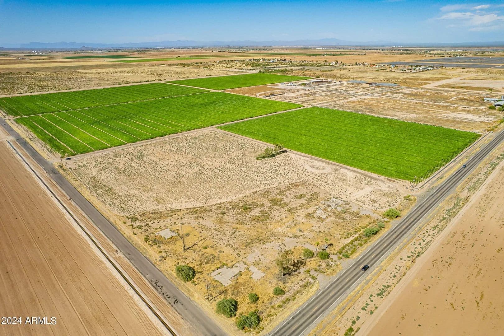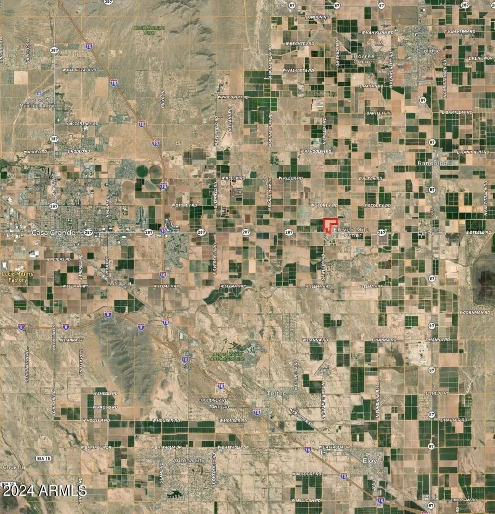 Prime farm land located in Casa Grande. 100 acres with grandfathered water rights. This property has 2 irrigation wells that feeds the entire property, Currently planted in corn. 1,100+/- of HWY 287 frontage road. 9 miles away from I-10 and Casa Grande Promenade. This property is centrally located with easy access to the surrounding cities. These small farms are few and far between call for more information.