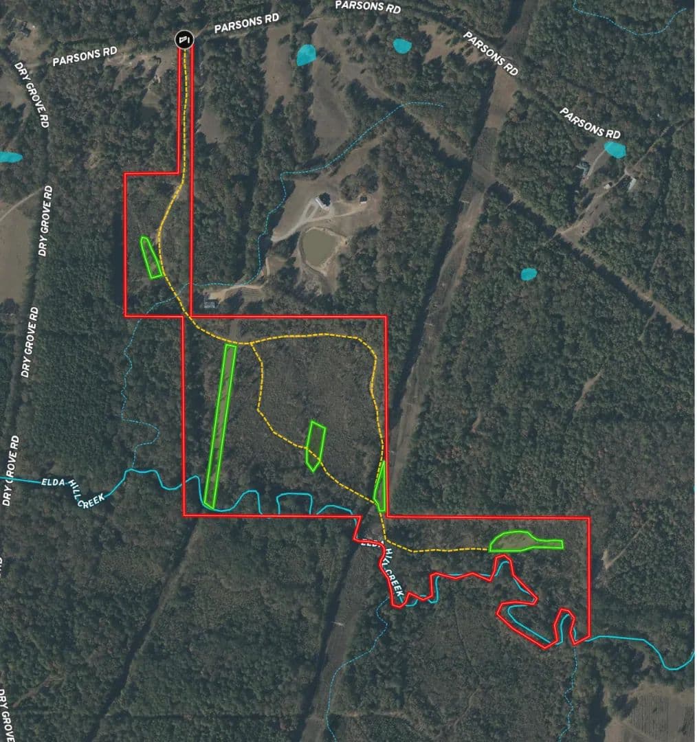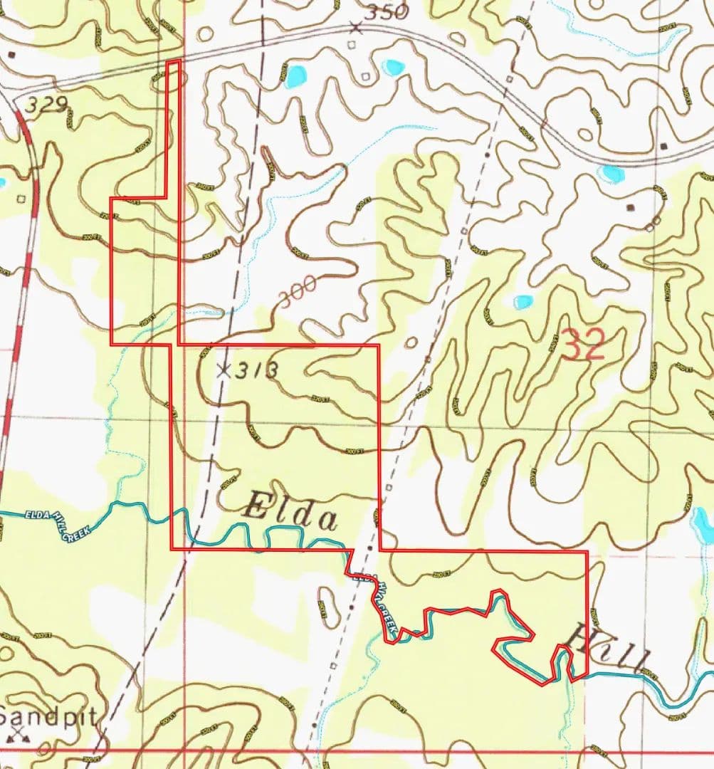 The land is primarily comprised of 7-8 year-old natural regeneration, creating outstanding wildlife habitat and cover. Additional improvements include five established food plots, a small stand of hardwood timber, live-running Elda Hill Creek, and young fruit trees planted by the current owner. The gently rolling topography and established internal trail system provide easy access throughout most of the property.