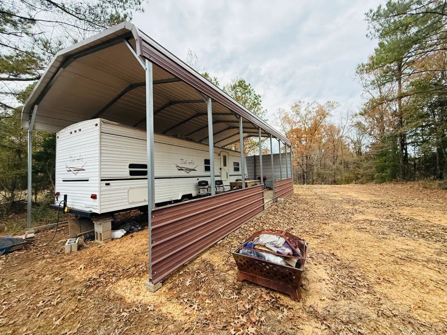 The layout is well-designed, with the front portion ideal for building a camp or hunting cabin, while the remainder of the acreage is preserved for uninterrupted hunting and recreation. Currently, there is a camper and two coverings that will stay on the property.