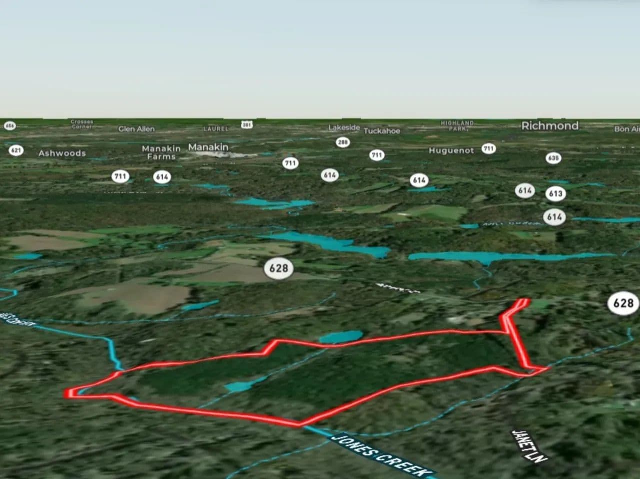 Welcome to the perfect setting to build your own private homestead or personal paradise, surrounded by towering pines, majestic oaks, and the serene waters of Jones Creek. Discover this remarkable 78+/- acre property in Powhatan County, Virginia, offering the perfect balance of seclusion, natural beauty, and investment potential. This diverse tract features 50+/- acres of planted loblolly pine and 24+/- acres of mixed hardwoods, providing both timber income opportunities and a scenic, wooded landscape.