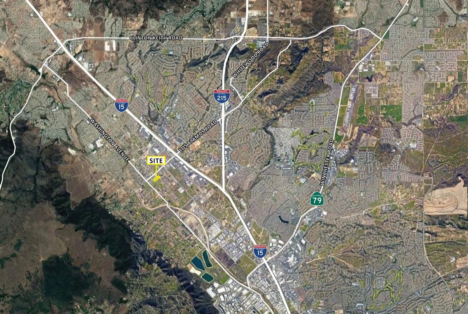 The subject property is approximately 2.65 acres of relatively flat land with an existing single-family home as well as a small dwelling unit toward the back of the property. The property has approximately 185 feet of frontage along Adams Ave and is approximately 630 feet in length. To the south of the property is large 19 acre property with approved plans for 107 single family residential homes. This is a project that will be built by Century Communities with construction commencement anticipated for Q1 2025. Immediately to the north of the property are two multi-tenant office buildings totaling a combined 56,000+ SF of office space, as well as an equipment rental yard. The property is just 1.3 miles from I-15 at Murrieta Hot Springs Rd and 1.2 miles from I-15 at Kalmia St. Water and Power currently serve the existing structures on the property. There appears to be an existing storm drain in Adams Ave with the closest sewer available at the nearby Medical Office Building at the corner of Adams Ave & Ivy St.