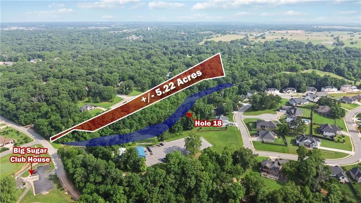 +/- 5 acres of prime land in the rapidly growing community of Pea Ridge, AR, zoned RE Residential Estate and R-1 Low Density Residential. This scenic property is located across from Sugar Creek Estates and overlooks Hole 18 of the Big Sugar Golf Course, offering beautiful fairway views. With sewer and water available at the street and electric and gas nearby, the property is well equipped for development. Ideally located near the Big Sugar Clubhouse, it's also approx. 2.5 miles from the Walmart Neighborhood Market, 4 miles from Pea Ridge High School, and approx. 9 miles from Walmart's new world HQ - making it a strategic and attractive location for residential investment or development.