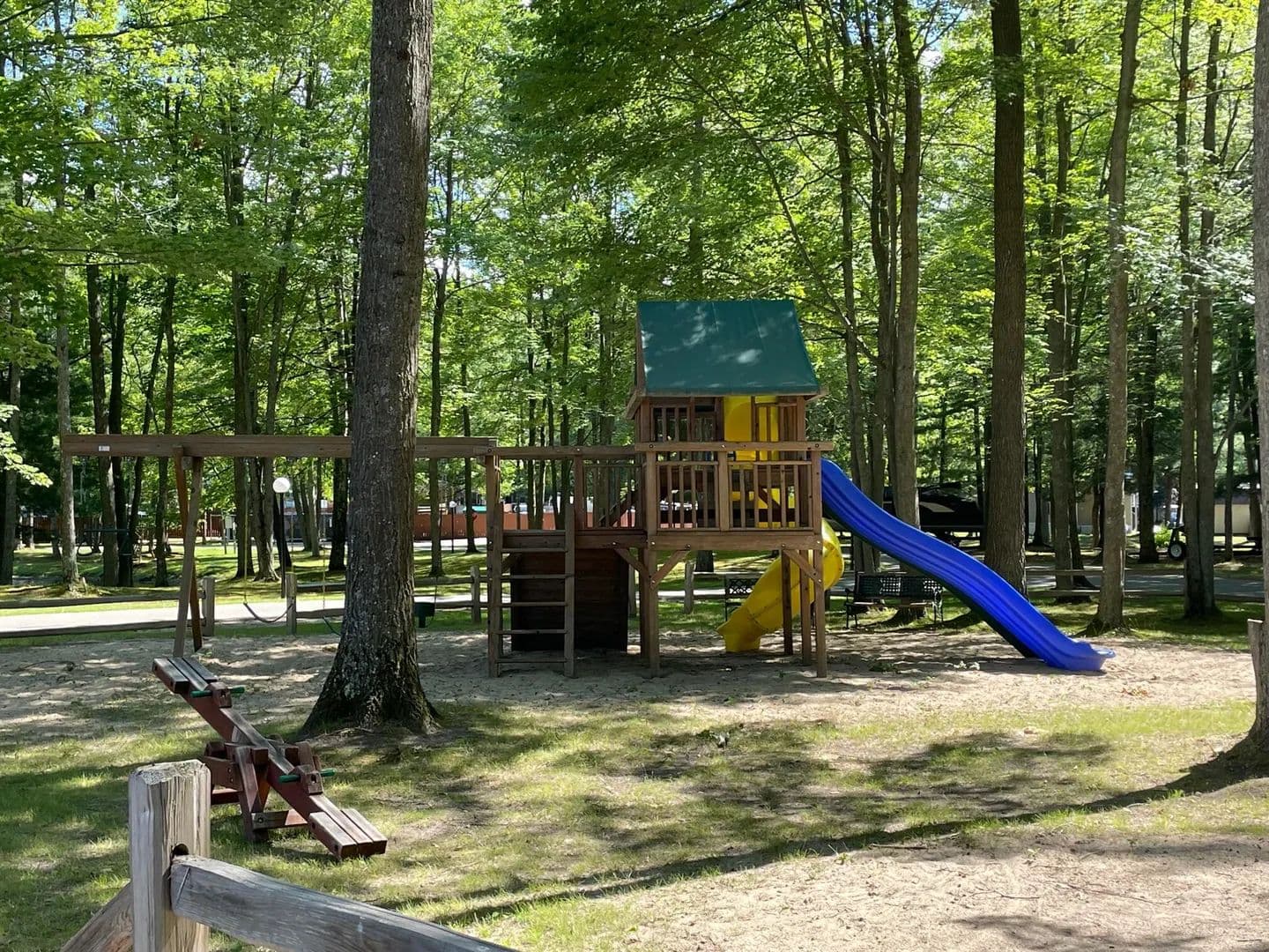 Sandy Oaks RV Resort! This full hook-up lot includes a large concrete pad and 2 car parking area. Included is a 2004 Salem 5th wheel that's fully furnished! Resort offers a clubhouse with indoor pool, hot tub & fitness room. Low HOA fee ($117/mo) includes your water, internet, cable, lawn care and snow removal. Property is located near ORV/snowmobile trailhead & boat launches on Houghton Lake. Come take a look today!