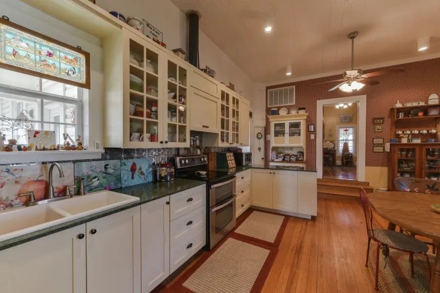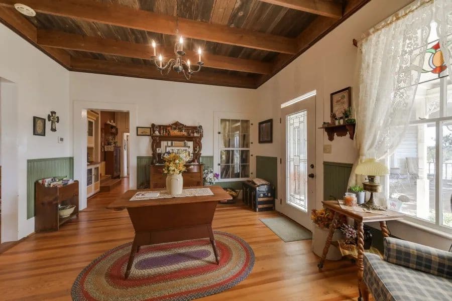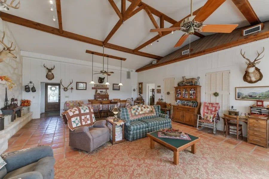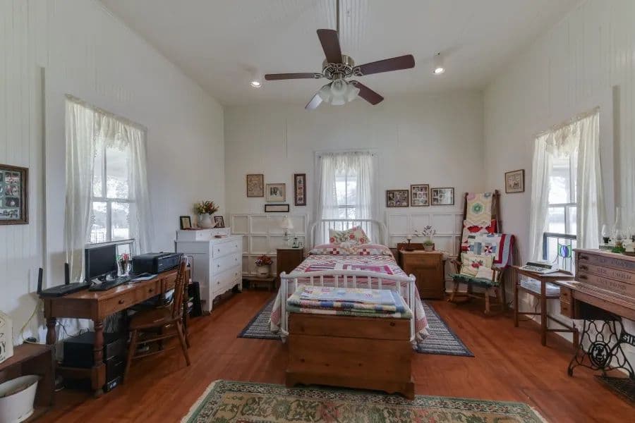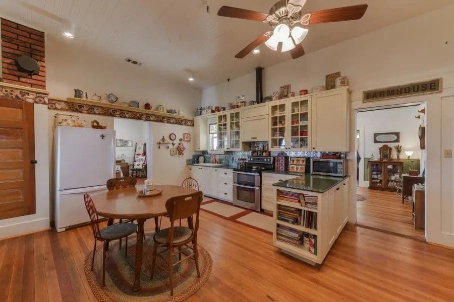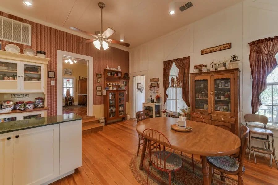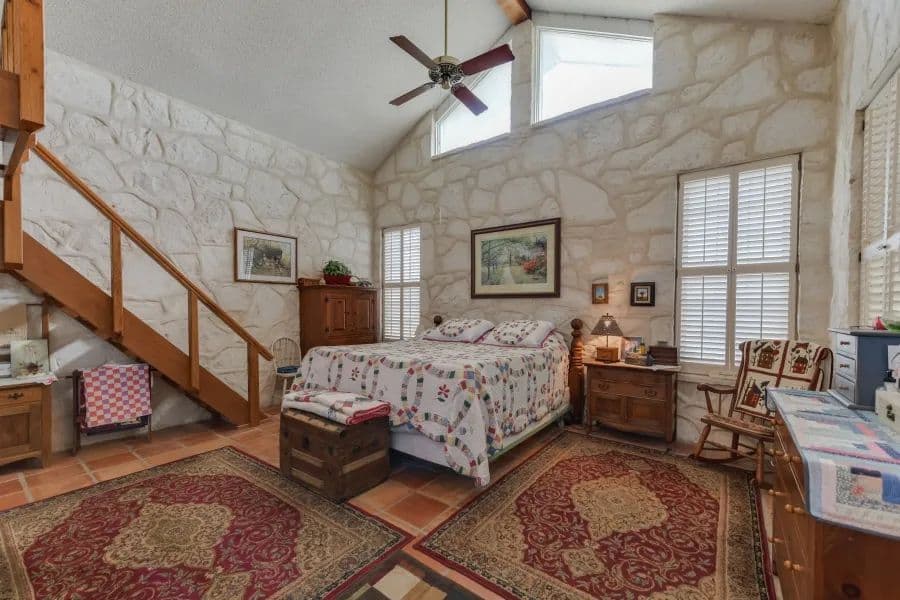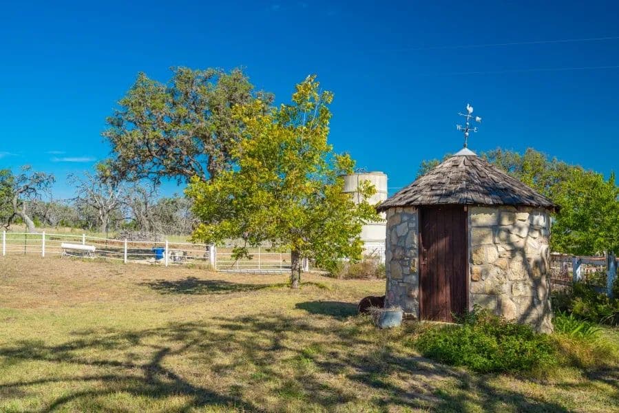 The Jennings Ranch is located on Old Comfort Road in Comfort, Texas. The 80 acres has over 1,900 feet of paved County road frontage and over 1,100 feet of Holiday Creek lining the southern perimeter of the ranch. There are two large stock tanks and the pastures are cross-fenced. The beautiful Farm House was originally built in the early 1900’s. It features long leaf pine floors and hand pressed Saltillo tile. Beaded wood throughout the home adds a taste of simpler times with quality craftsmanship and design. There is a large rock fireplace in the family living area, a fireplace in the master bedroom and Ben Franklin wood stove in the front bedroom. A large open Kitchen with high ceilings and updated appliances. An enclosed Sun Room off the kitchen provides plant protection and easy access. From the hand dug wishing well to the rock smokehouse and native stone well house the ranch provides comfort and historic beauty. A large Equipment/Hay barn, workshop with office/kitchen/bathroom. The land is cross-fenced into manageable livestock pastures for ease of movement with two large stock tanks providing water resources for wildlife.