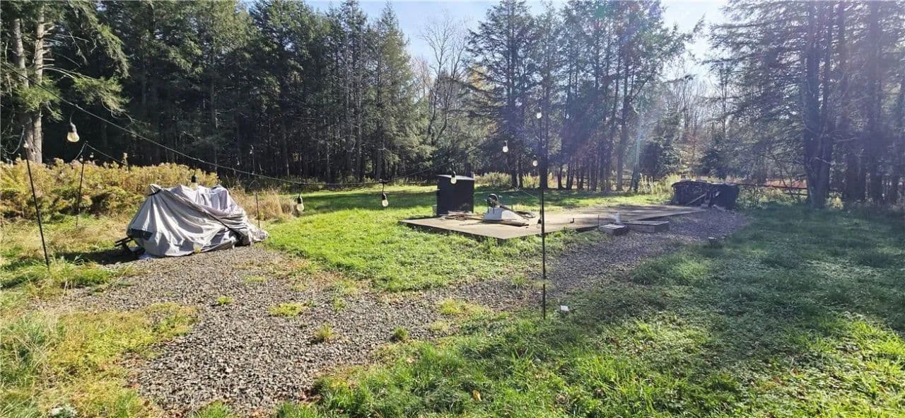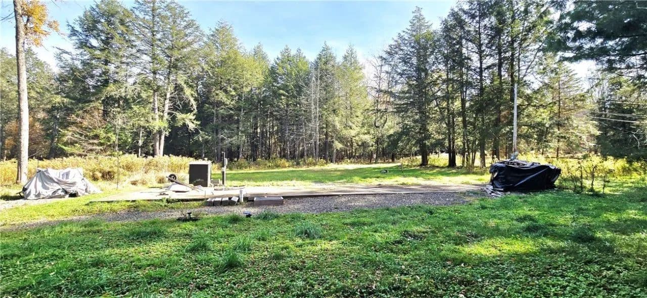 Do the math-what's the price of privacy, peace, and fully installed utilities? This 3.75-acre parcel offers a rare opportunity to enjoy your own ready-to-go Catskills retreat. Formerly the site of a 3-bedroom, 2-bath mobile home, the property now features a drilled artisan well,an additional water spigot, septic system, and full electric service-everything you need to start building, glamping, or simply relaxing in nature. Previously operated as the Fern Pod AirBnB, the site includes a 40' concrete pad for an RV or tiny home, two 50-amp electric services (one for the RV and another set up as a Level 2 EV fast charger), firepit, and dry firewood ready for use. Electricity is provided by Delaware County Electric Cooperative and you can even get a cell signal up here. The setting is serene and picturesque-a mix of open meadow, established driveway, and a tall pine forest with a meandering stream. The septic system was inspected in 2025 and previously pumped in 2023. Zoning allows RV or tiny home living up to 6 months at a time, offering flexible use for recreation, short-term rentals, or as a future homesite. Conveniently located just minutes from Buck Hill Farm for breakfast, Thompson's Sugar Shack during maple season, and the charming village of Jefferson, where you'll find dining favorites like Mill Pond Inn and Heartbreak Hotel & Bar. Close to area hiking, farm markets, and year-round Catskill attractions, this location perfectly balances seclusion with accessibility. Whether you envision a private weekend escape, a turnkey rental property, or a site to build your dream cabin, this unique offering delivers exceptional value-utilities in, privacy secured, and your vision ready to unfold.