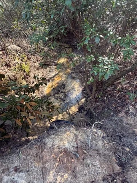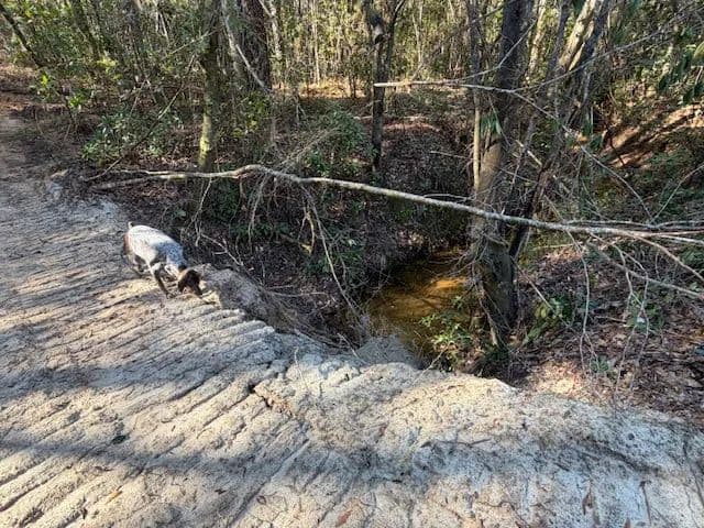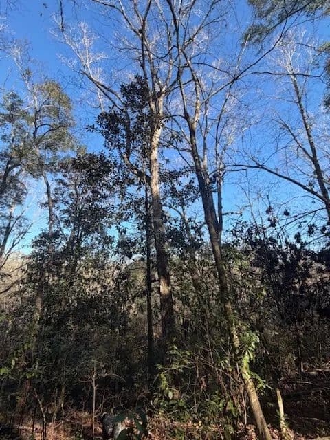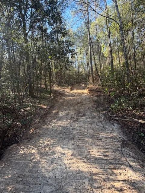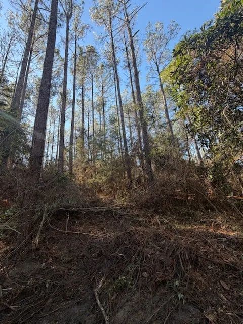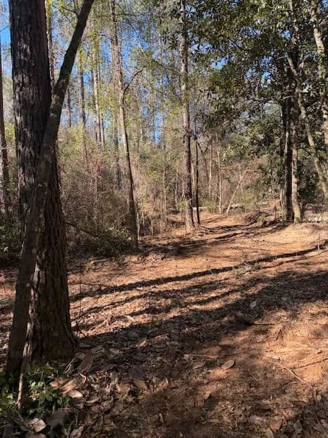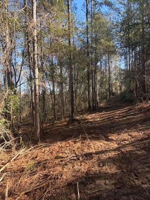 The acreage is heavily adorned with a canopy of mature hardwoods and towering pines, providing privacy and significant natural value. Access throughout is made convenient by a newly established trail system that meanders about, allowing for effortless exploration and enjoyment of the terrain.