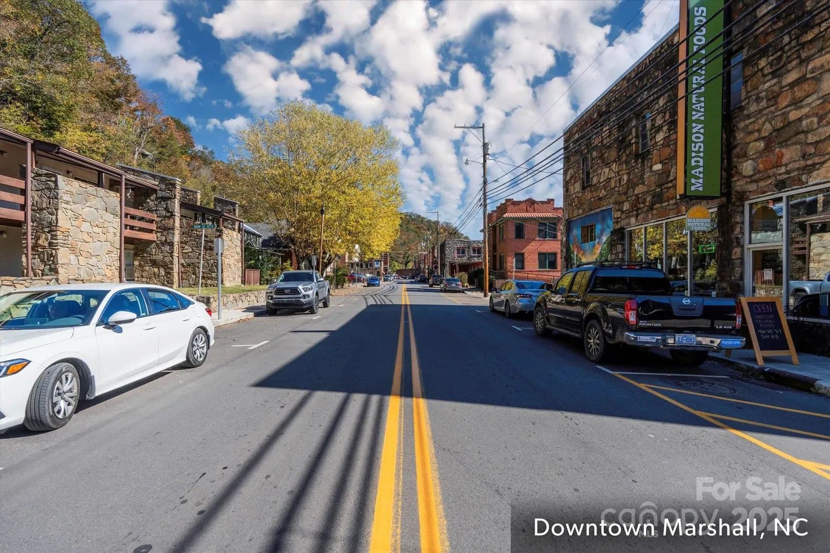 This 9.7+/- acre property with southwest exposure is ideally located just under three miles from downtown Marshall and less than a mile from a public French Broad River access point—both reached via scenic back roads.