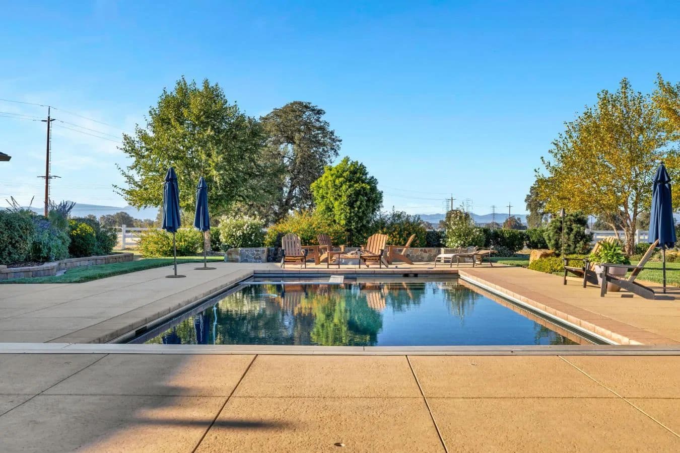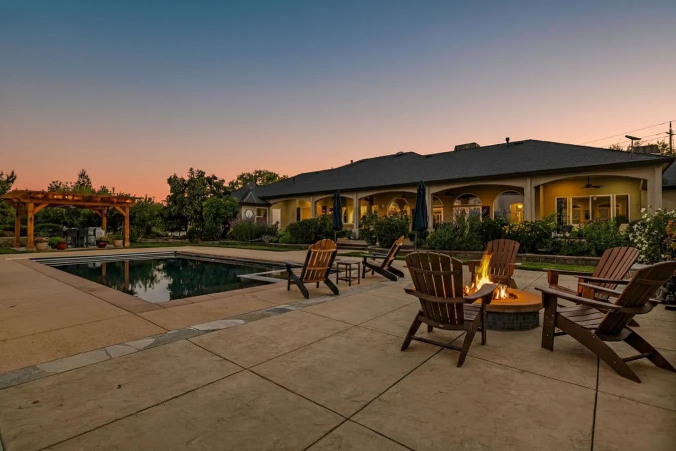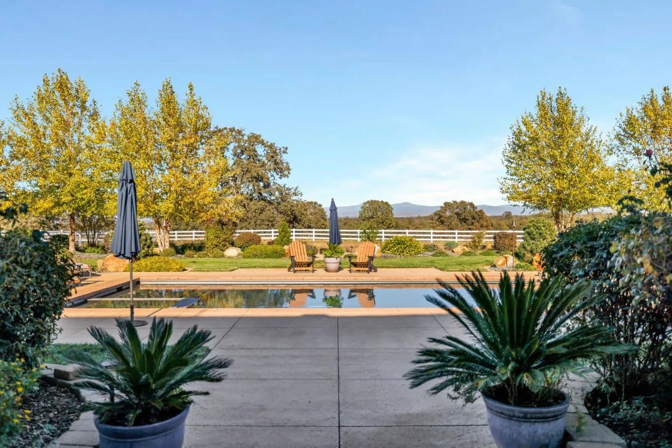 Luxury Equestrian Living in Sunset Hills Modern Ranch Estate with Pool, Barn and Trail access situated inside the gated community of Sunset Hills. This exceptional property blends luxury, privacy and the rare benefit of usable land. Positioned on over 10 acres of fully fenced and cross fenced land, it offers an elevated ranch lifestyle without sacrificing comfort or modern conveniences. A private gated entrance leads to a single story custom home offering 3,209 square feet of refined living space. The floor plan includes four full bedrooms plus an office inside the home, two full bathrooms along with a half bathroom and a three car garage. There is also an additional attached office located off the garage and back patio, ideal for ranch management, remote work or creative studio use. Tall ceilings, exposed beams and expansive picture windows fill the interior with natural light and capture dramatic views of rolling hills, seasonal foliage and distant mountain ranges including Mount Shasta and Mount Lassen. The outdoor living experience is resort level. A recently completed inground pool and spa overlook the scenic valley and hills beyond the property. Multiple patio and relaxation areas allow for effortless entertaining with two fire pits, a covered pergola, built in barbecue space, professional landscape lighting and intentional plant selections designed so something is always blooming throughout the year. The land gently rolls down to the North Fork of Patterson Creek, adding unmatched privacy and natural beauty. It is common to go hours without seeing another vehicle or hearing any outside activity. Designed for equestrian living or hobby ranching, the property is fully usable and ready for animals and ranch operations. Amenities include a three stall barn with power and water, a tack room, paddocks, a pasture area with water access, newly installed hog fencing for livestock, fruit trees, an olive orchard and a chicken coop. The private well produces over twenty gallons per minute and includes a filtration system. A direct trail easement leads from the property to miles of private riding trails offering the rare ability to saddle up and ride out without trailering. This combination of usable land, privacy and direct trail access is incredibly difficult to find. Modern systems allow for complete efficiency and peace of mind. The home includes owned solar with a backup battery system and a full house generator. Starlink high speed internet provides reliable connectivity for those working remotely or managing operations online. Equipment including a Kubota tractor and ATVs can be negotiated to create a turnkey move in experience. This is a rare offering that combines luxury, equestrian infrastructure, usable land and complete privacy while still being conveniently located near town. Only 20 miles to Redding, 17 miles to Red Bluff and 10 miles to Anderson. Sunset Hills is known for serenity, exclusivity and wide open freedom. Properties like this do not come available often.