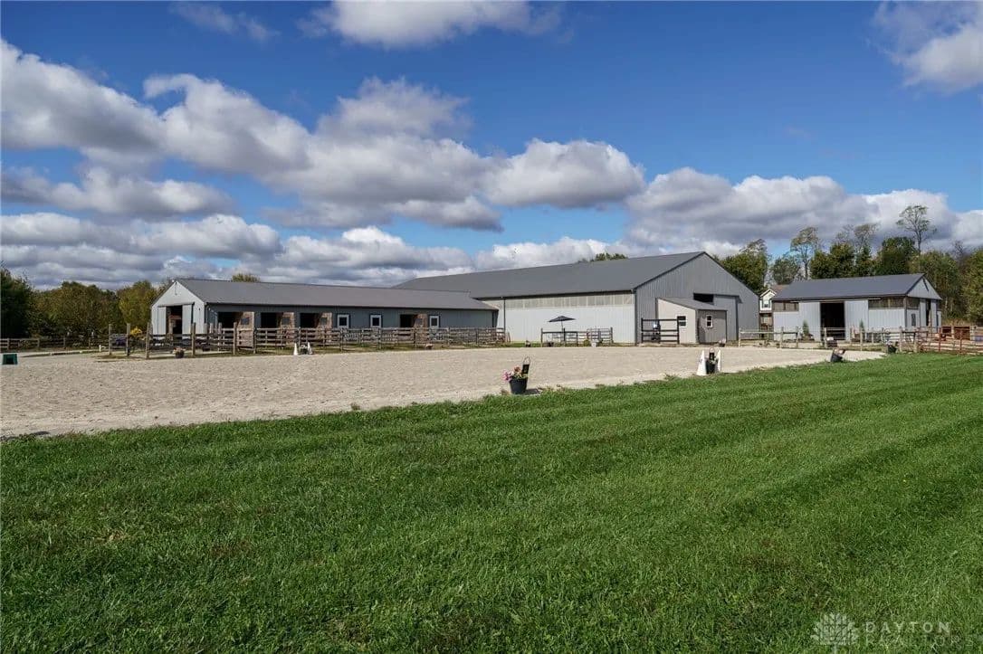 Welcome to Twin Oak Equestrian Center, located at 732 Settlemyre Rd, Washington Twp, OH. A dressage equestrian training center & a serene primary home nestled on 22.12 acres of stunning countryside. This property is the perfect fusion of luxury living & professional grade equestrian facilities, designed to meet the needs of passionate horse lovers/ trainers alike. This home offers 3,000+ sqft of living area, 5 spacious beds, 2.5 baths, a family room with vaulted ceiling adding to its open, airy feel. Relax in the 3 season rm or enjoy the finished basement with an egress window, ideal for entertaining. With beautiful views from every corner, this home provides a tranquil retreat from the demands of daily life. The private backyard blends seamlessly with the equestrian area, ensuring peace & quiet. For the equestrian enthusiast, the property includes 3 stall barns- a total of 26 stalls with concrete aisles, electricity, & water. Additional facilities include a hay barn, manure barn, 70 x 140 ft indoor arena, an outdoor arena, 11 fields with electric/ water, & 6 turnout areas. Do not miss out on this gem!