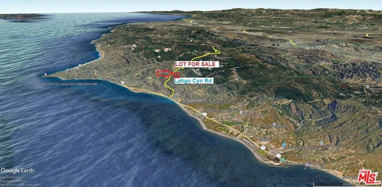 Malibu Ocean View Lot! Amazing ocean view downhill Lot located 3 miles up Latigo Canyon Road from PCH and ocean . Only 5 miles from center of Malibu and Pepperdine University. Lot has approximately 70 feet of frontage on Latigo Cyn Road - see aerial maps in photo section of this ad. Lot is near multimillion dollar homes. There are no reports or studies completed on this property. Water and electricity are in street. Easy to see anytime. APN 4461-010-032