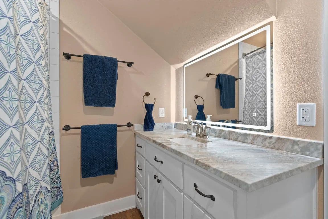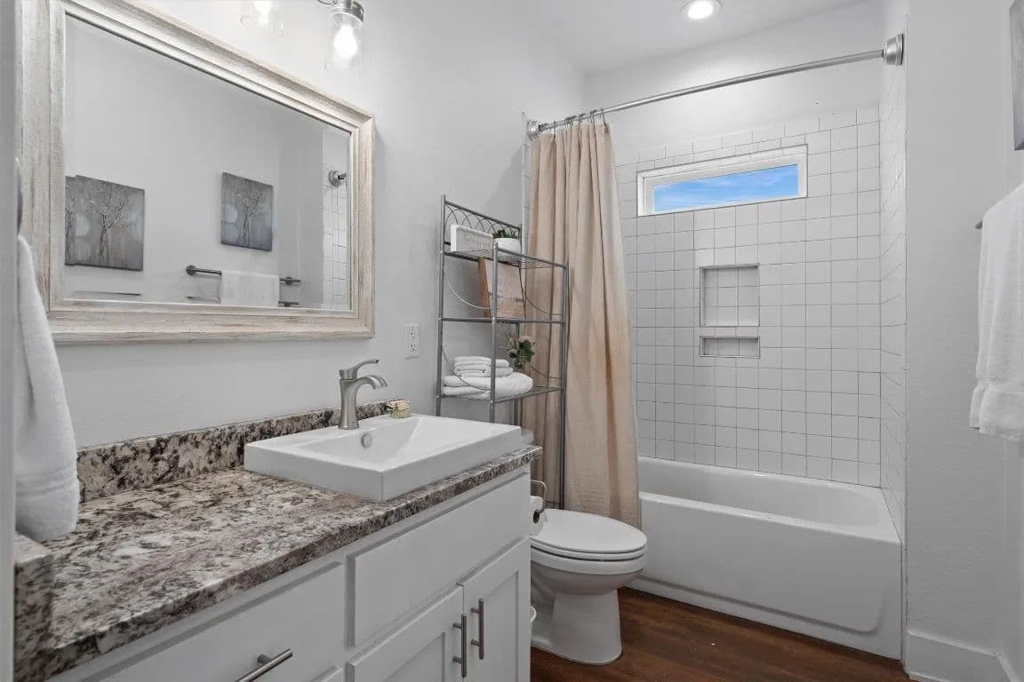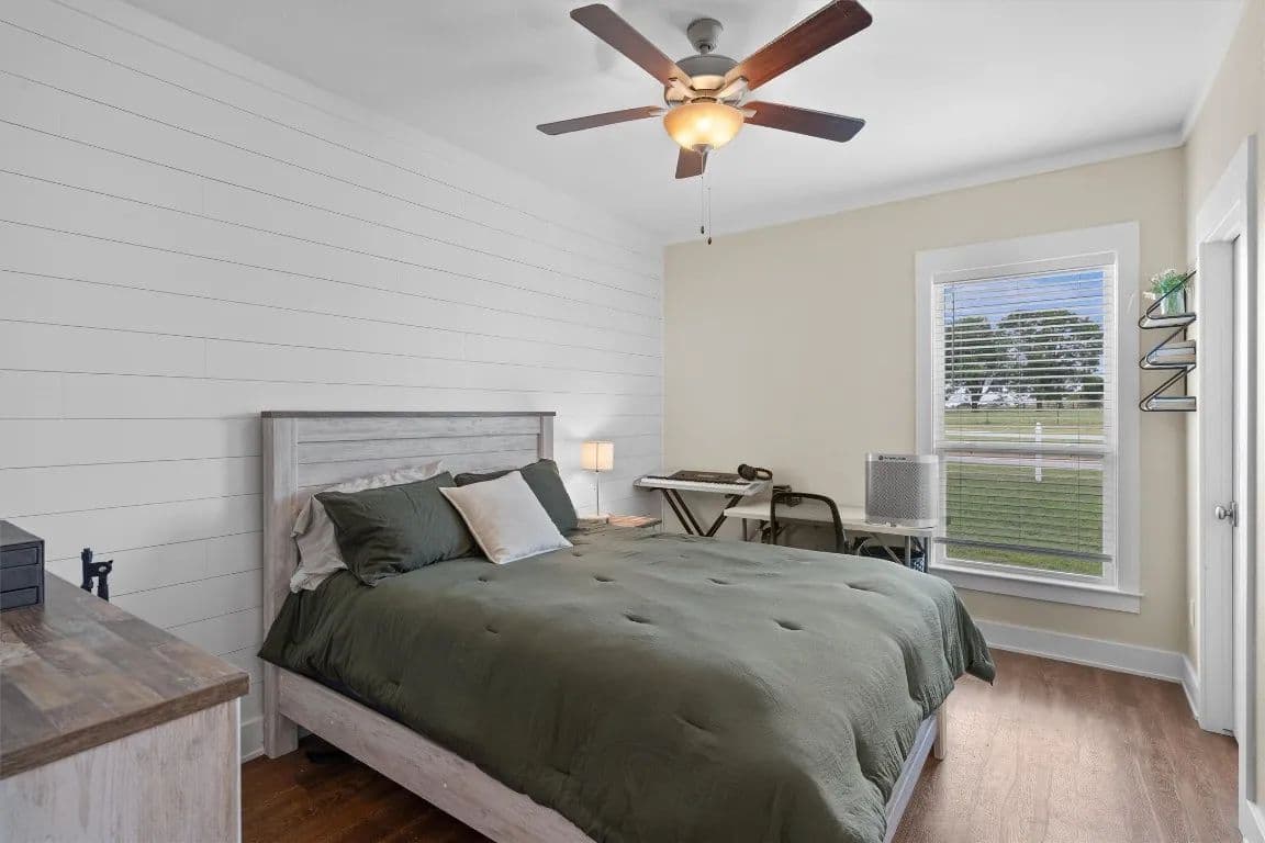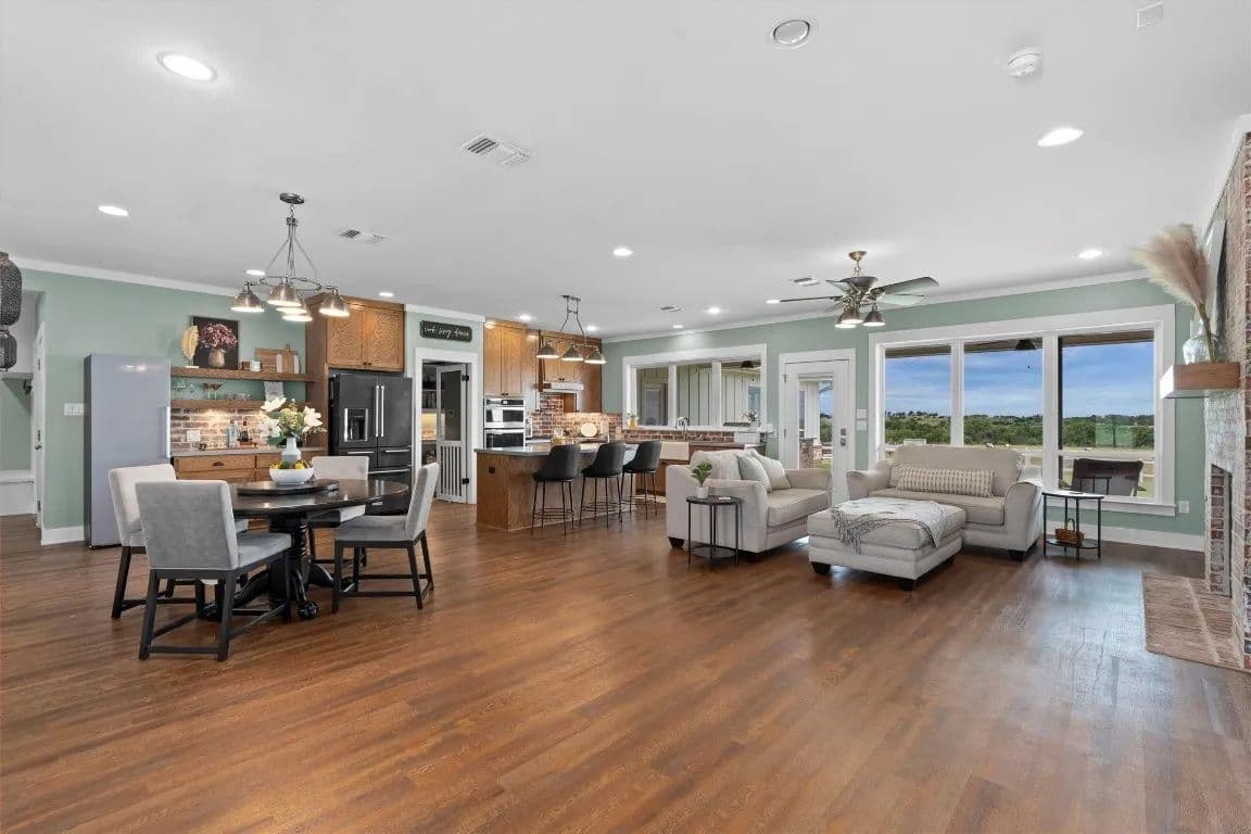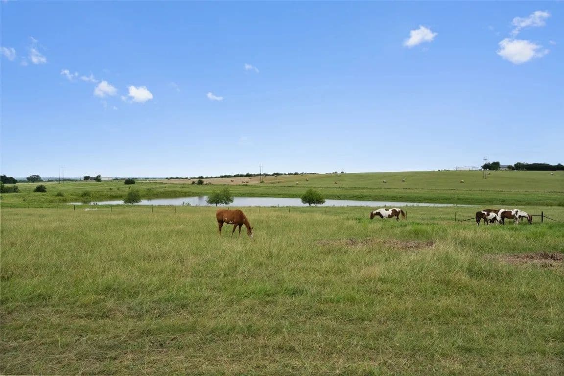 *No restrictions, per title company* For those looking to live life without limits, this one-of-a-kind Hill Country estate offers over 30 acres, a modern farmhouse, a 5-acre pond ideal for livestock, a private guest house, and a massive workshop with its own guest apartment—making it the perfect property for multigenerational living, entrepreneurs, tradespeople, or anyone craving space, flexibility, and freedom. The land is fully fenced and cross-fenced, ready for animals, expansion, or future agricultural use. The 3,121 sqft main home is wrapped in classic split-rail fencing, and thoughtfully designed to embrace the natural beauty of the property. Inside, the open-concept layout is framed by expansive windows, shiplap accents, and a dramatic floor-to-ceiling brick fireplace. The rustic-style kitchen features an exposed brick backsplash, large island with bar seating, stained wood cabinetry with pull-out drawers, a spacious butler’s pantry, and a sink window overlooking the rolling landscape. The primary suite includes patio access, a bay window, and an ensuite bath with dual vanities and a walk-in shower with seating. A second bedroom and full bath are on the main floor, along with two flex spaces or home offices with French doors. Upstairs adds even more room to grow with another bedroom, full bath, and large additional living area. Outside, the covered patio and full outdoor kitchen are ideal for entertaining or relaxing while taking in the serene views. A 3-car garage includes one bay that connects to a 622 sqft attached casita featuring a kitchen, living area, bedroom, walk-in closet, and full bath—perfect for guests or extended family. For hobbyists, tradespeople, or business owners, the 3,142 sqft workshop is a dream, and it includes a separate 739 sqft guest apartment with a full kitchen, living room, bedroom, bath, laundry, and oversized utility room. With ample space to add a pool, raise animals, cultivate gardens, or bring your vision to life.