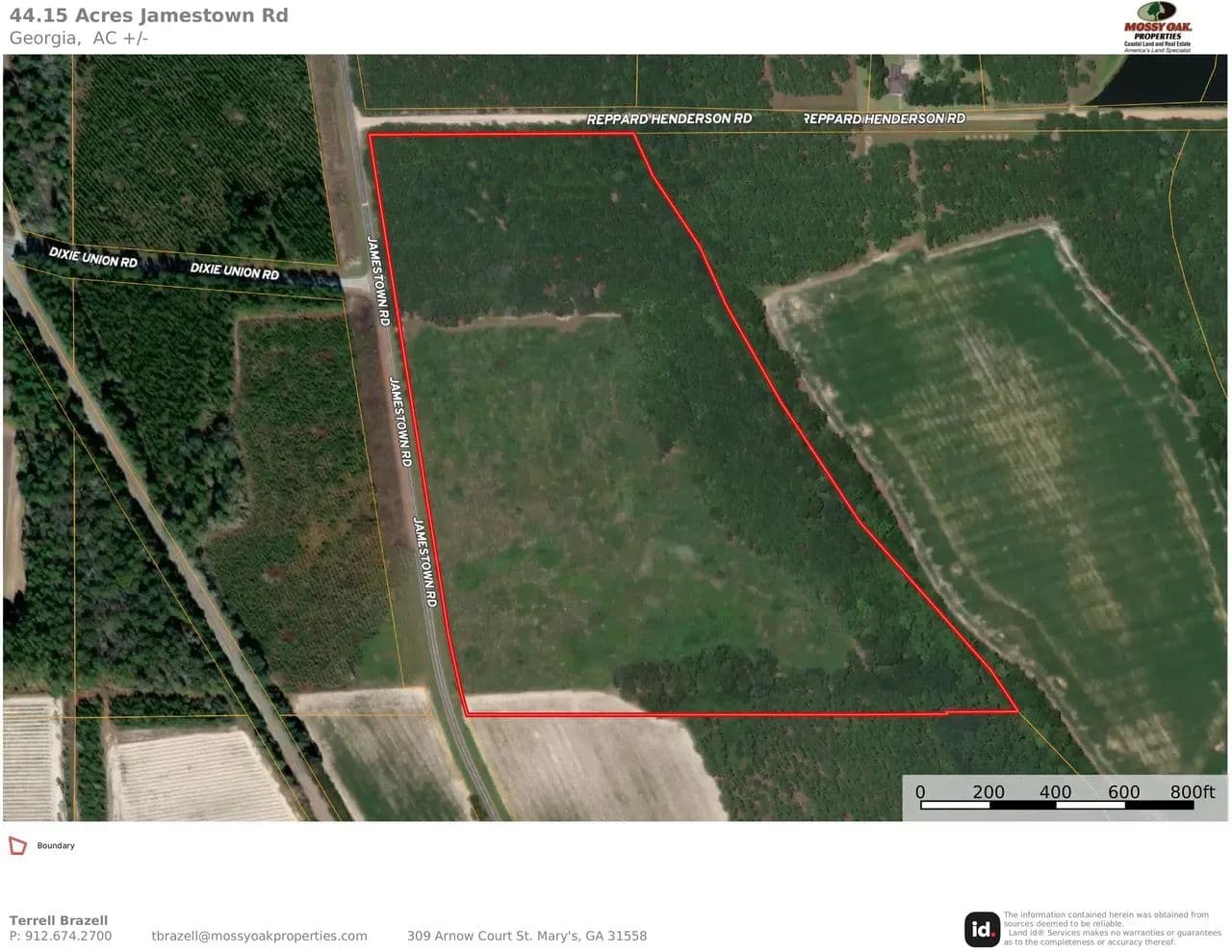 Discover this 44.15-acre tract in Ware County, GA, featuring high, well-drained land with only 0.45 acres+/- of wetlands, making it ideal for building your dream homesite or creating a private recreational retreat. The property is located at the corner of paved Jamestown Road and Repard Henderson Road (dirt), offering easy access and a peaceful rural setting.