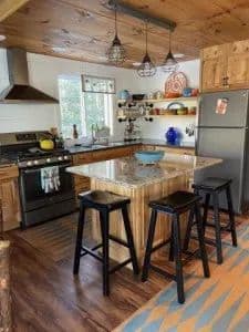 This 3 bedroom, 1 bathroom cabin has been professionally remodeled and features an open concept kitchen, living and dining area with granite island, open shelving, and slider to deck. Knotty pine throughout and shiplap in the living and kitchen area. Enjoy beautiful sunsets from the deck or fire pit overlooking a beautifully landscaped yard with perennials and a slate walkway. As an owner you have access to 450' of water frontage on Moosehead Lake just steps from the cottage, a private cove, boat slip, community dock, boathouse, community outdoor fireplace, and kayak/canoe storage. HIgh-speed internet was just added so now you can work from camp!
