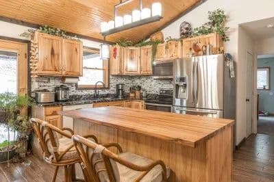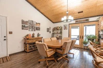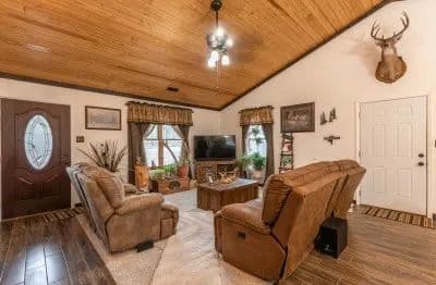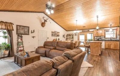 A beautiful 1 bed, w/an additional room, 1 bath custom built home on 5 acres right in the middle of 40,500+ acres of Conservation and the Conservation Sunklands providing additional acreage to enjoy. This location is PRIME if you are a hunter, fisherman, horse enthusiast, kayaker or just love spending your days outdoors or down at the river. Here you are just a couple miles from Big Creek Horse Trails, Big Creek and the Current River. The custom built home is equipped with just what you need living out in the woods but not skimping one bit on the top notch finishings. It has gorgeous granite countertops, hickory cabinets, tile floors, vaulted ceilings and log siding on the front with giant natural cedar trunks lined up along the covered porch. Out back looking onto your property is a 12x20 covered deck perfect to grill on, hang a swing or hammock and enjoy your morning coffee. This right here is great for a permanent residence or your cozy weekend getaway!