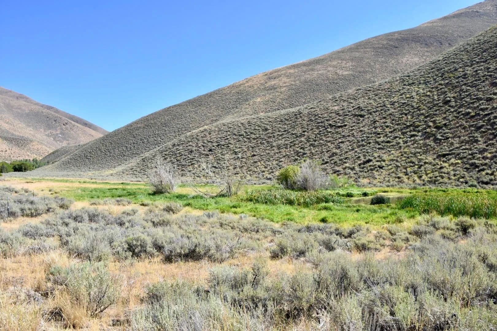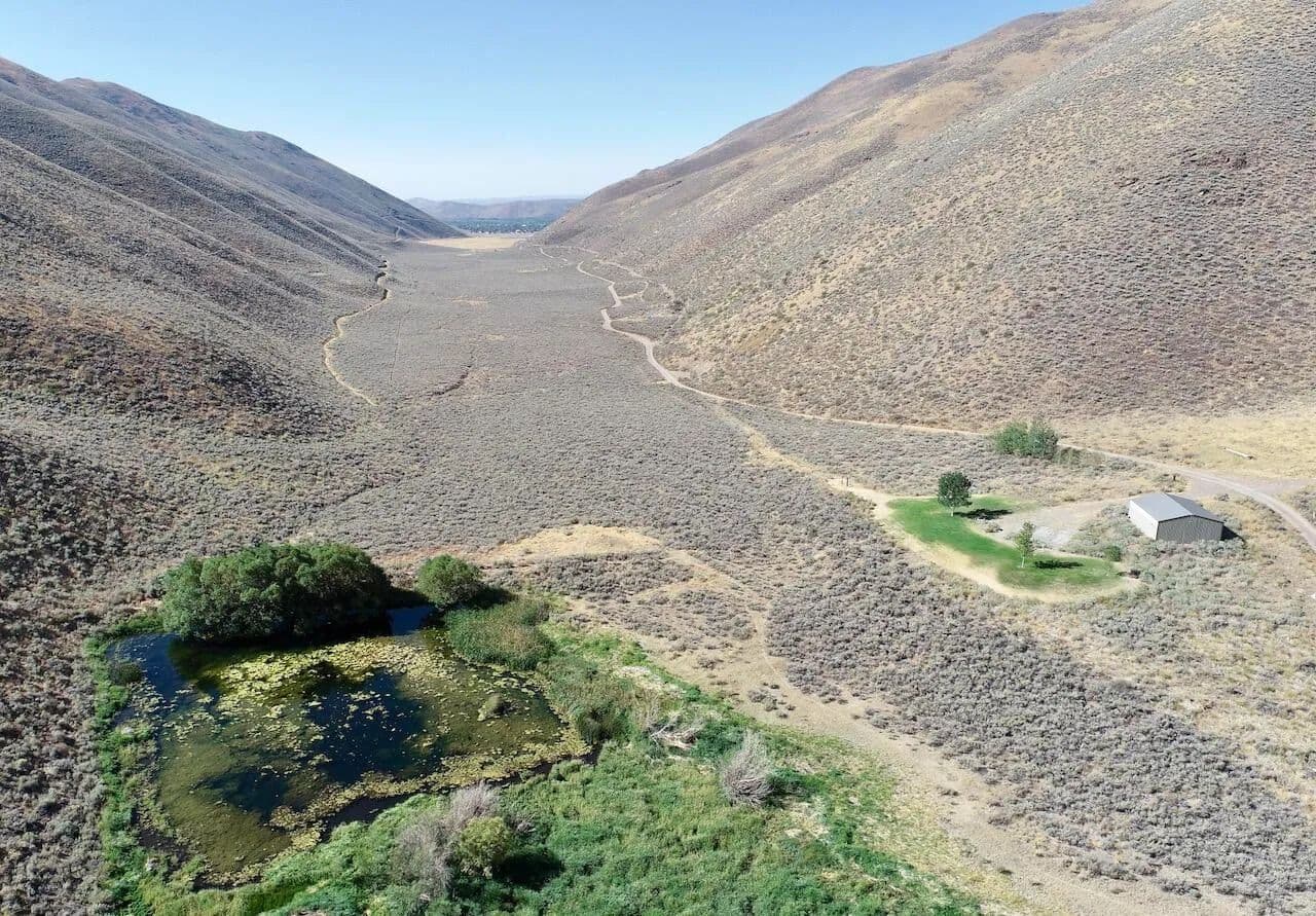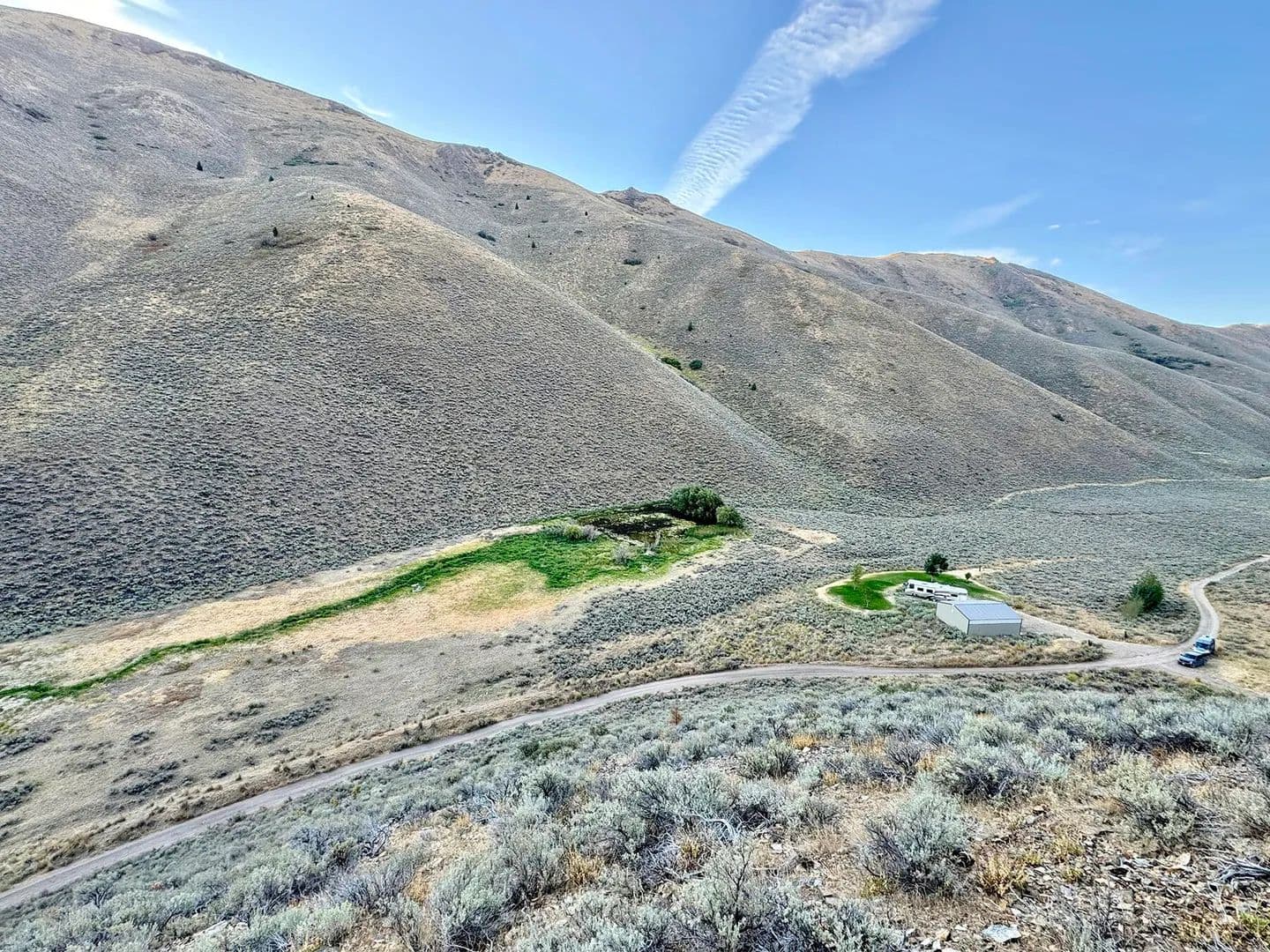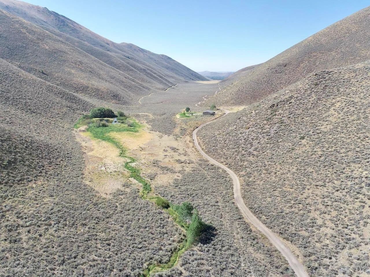 Spirit Woman Ranch is an 80-acre property located 3 miles NE from Bellevue and 20 miles from Sun Valley Resort, it sits in a secluded canyon surrounded by federal lands. A spring-fed creek flows through the ranch, with a pond and water rights. The land includes a 1,080 sq. ft. garage, a homesite, and a septic system. It offers off-grid potential, access via a seasonal road.