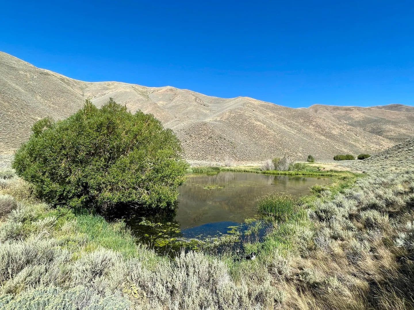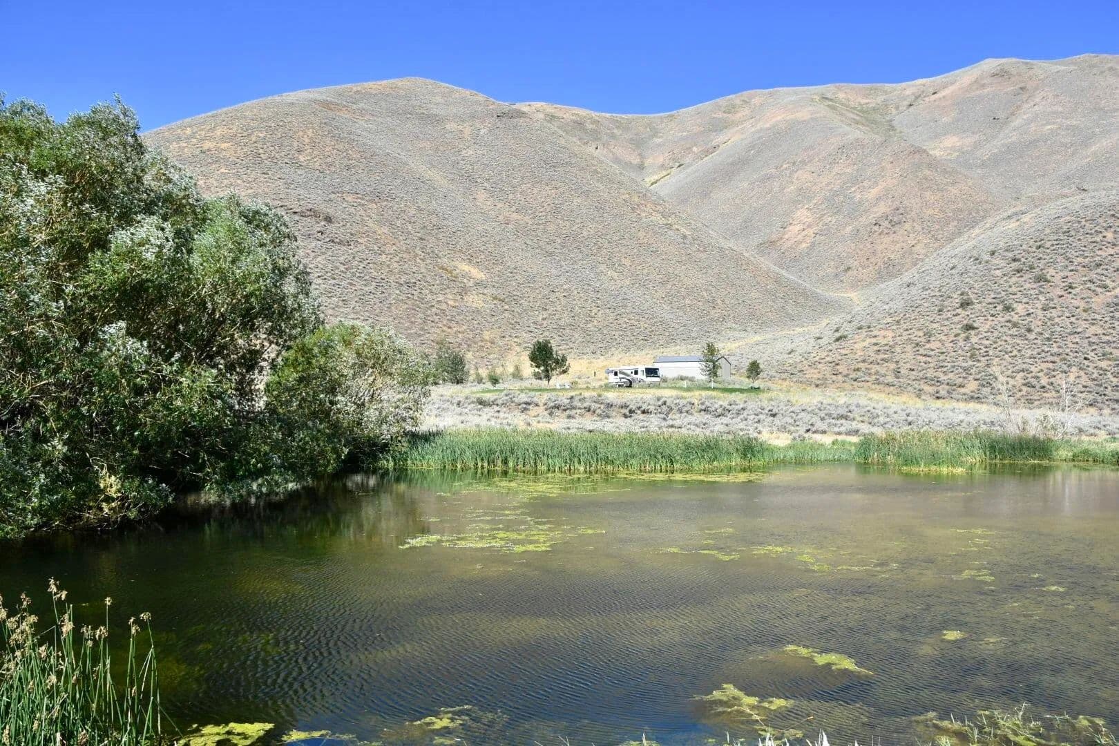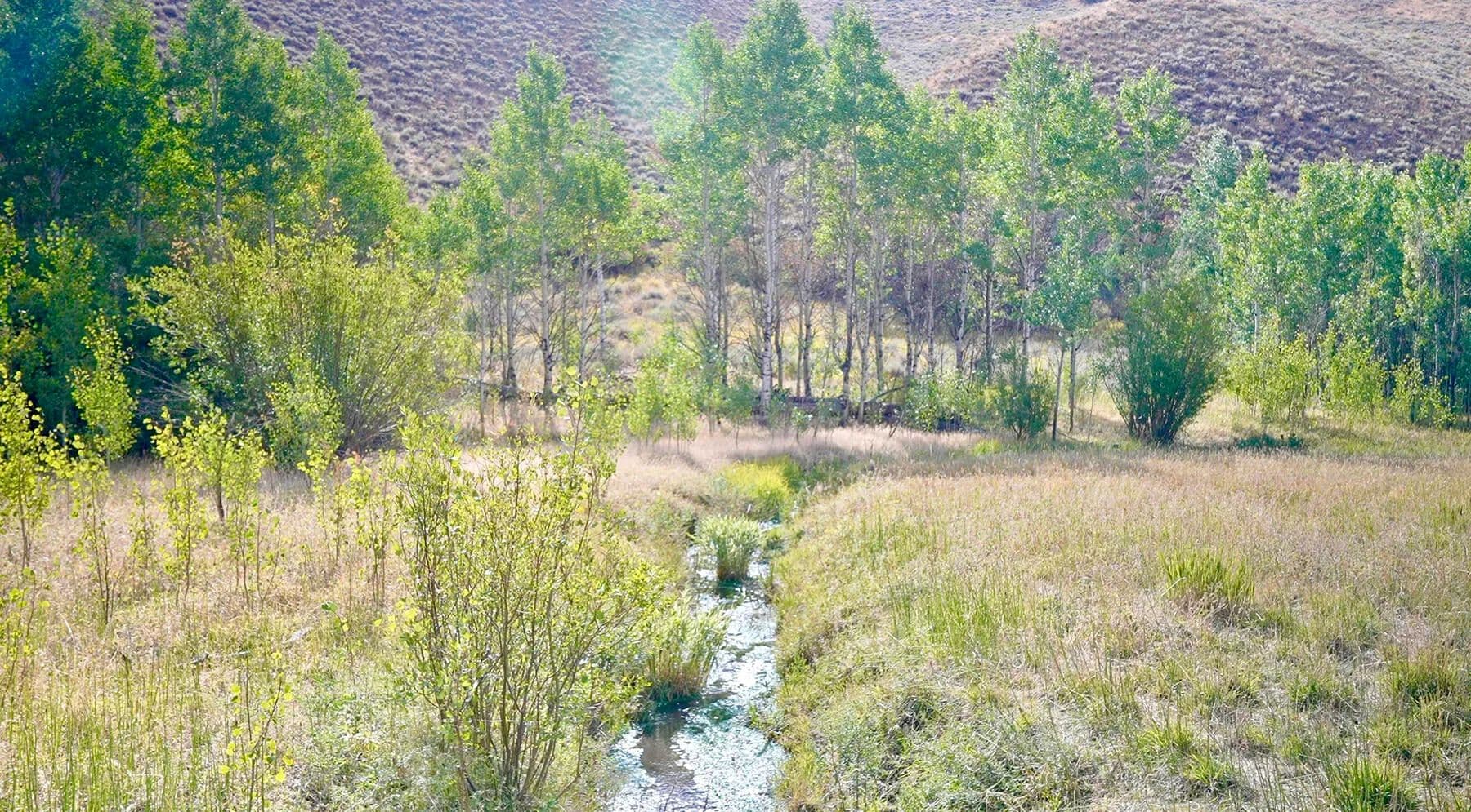 Spirit Woman Ranch is an 80-acre property located 3 miles NE from Bellevue and 20 miles from Sun Valley Resort, it sits in a secluded canyon surrounded by federal lands. A spring-fed creek flows through the ranch, with a pond and water rights. The land includes a 1,080 sq. ft. garage, a homesite, and a septic system. It offers off-grid potential, access via a seasonal road.