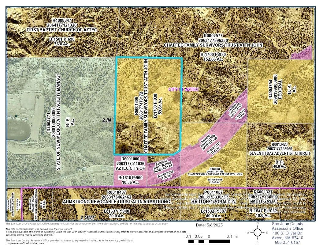 Vacant Commercial Land located in the City Limits of Aztec NM. This 62.92 Acres is 2 parcels of land, combined, and is located along the US 550 Bypass. Great potential when the Bypass is completed.