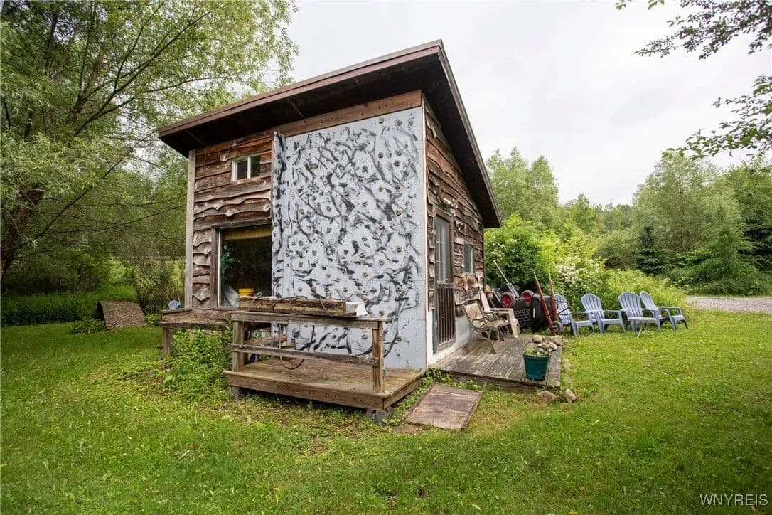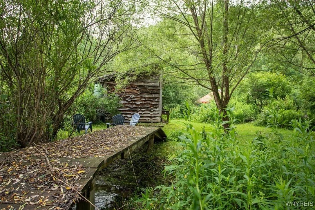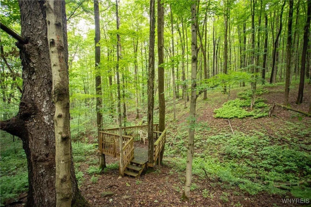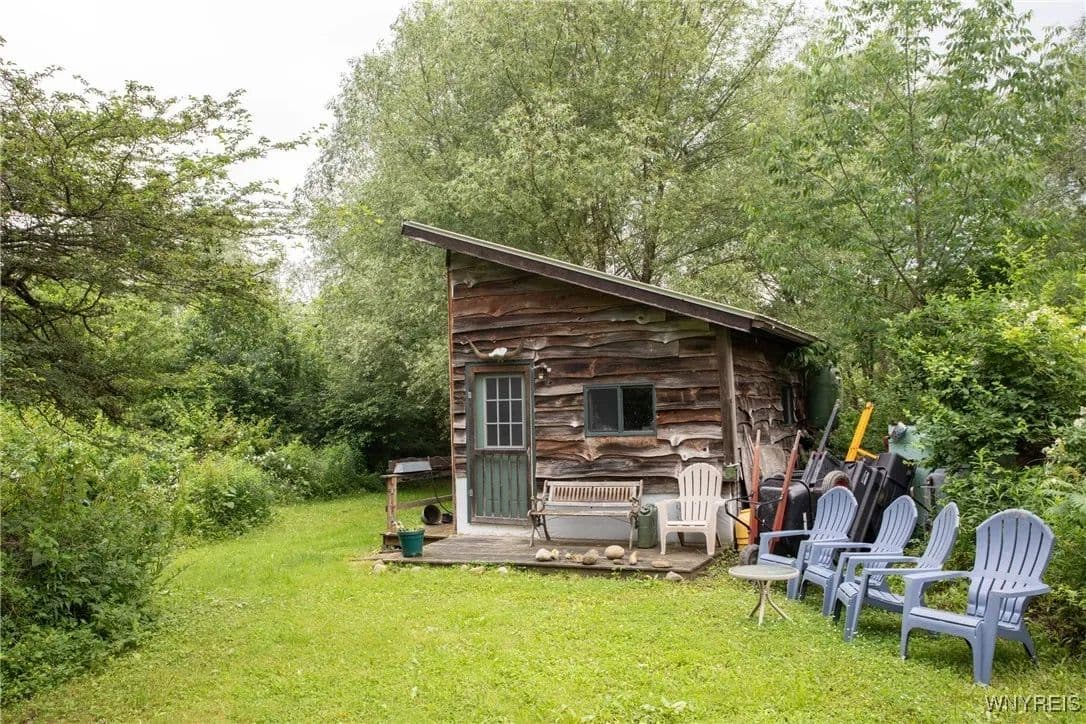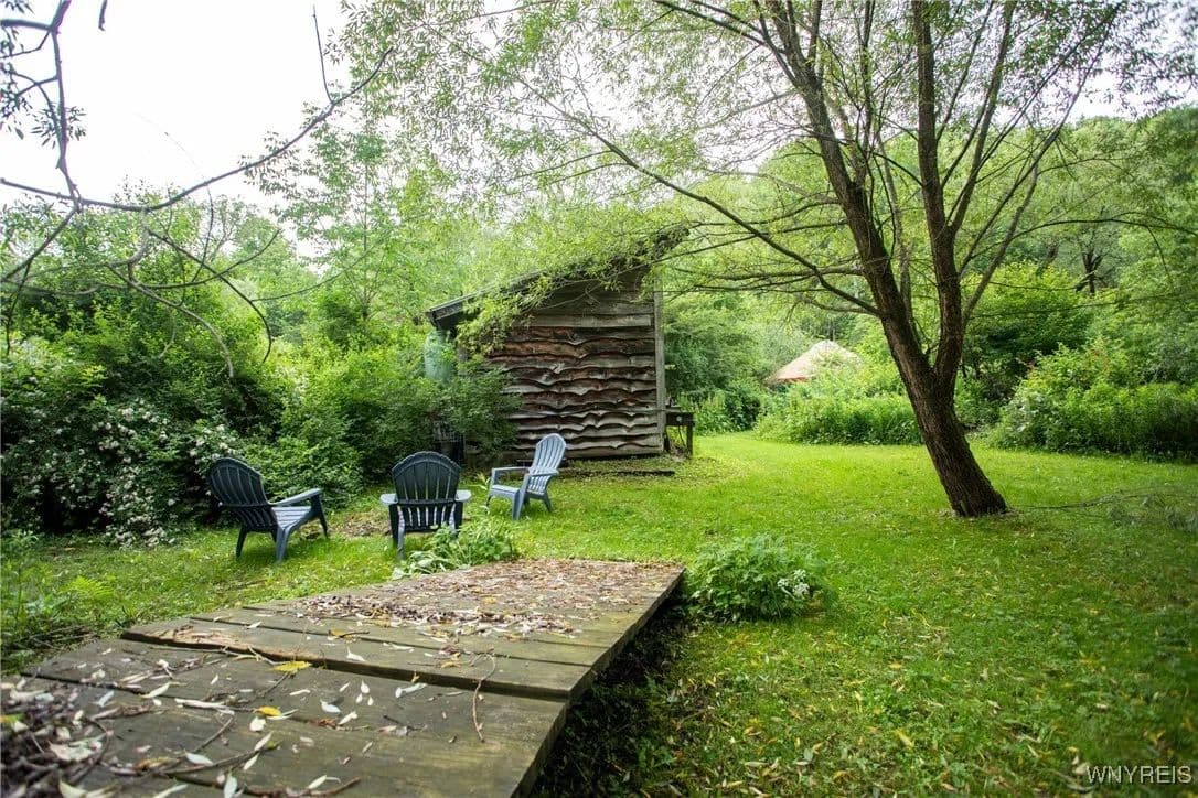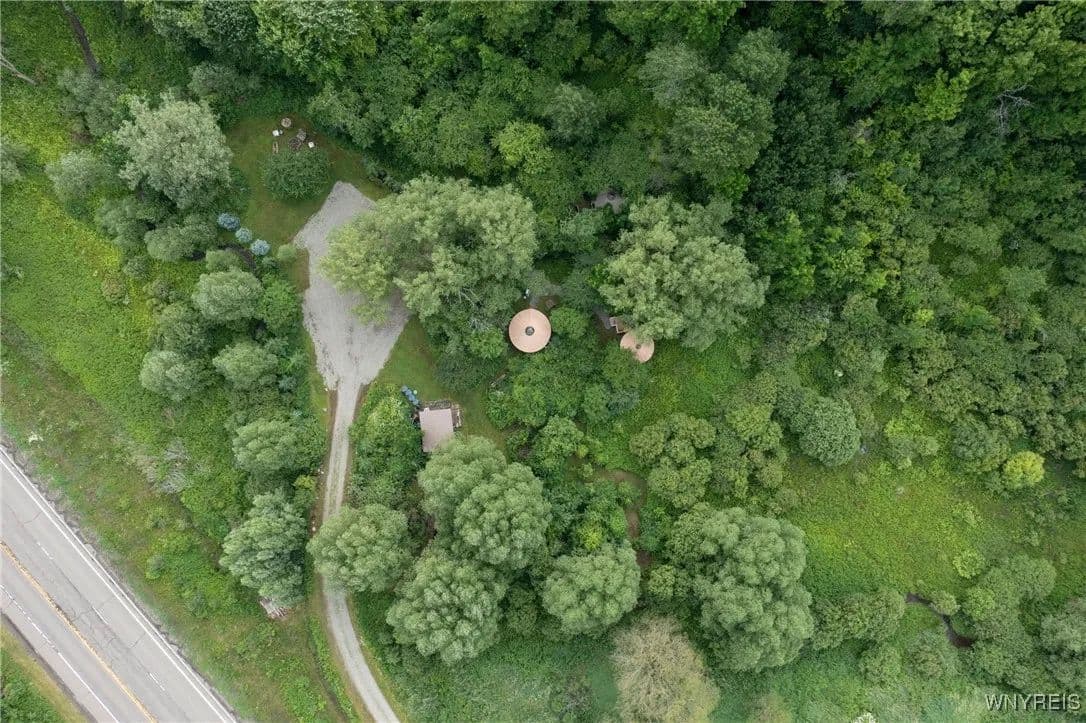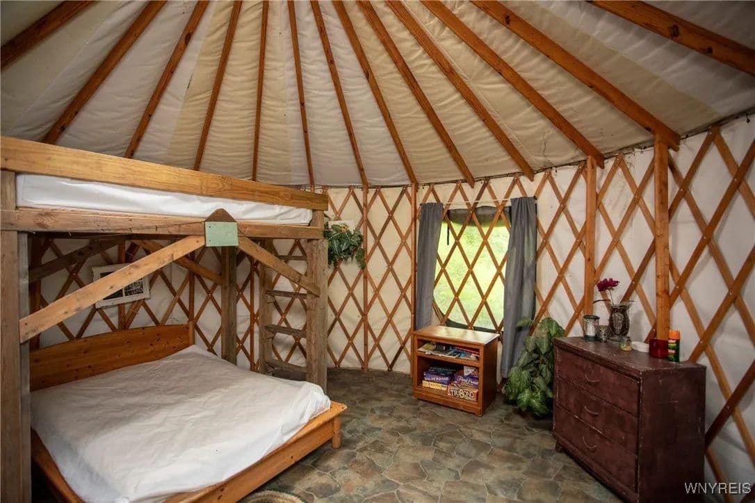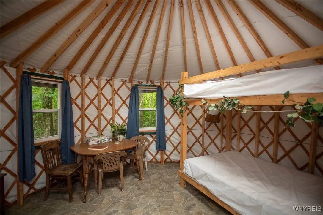 NEW PRICE! WHAT A UNIQUE AND EXCITING OPPORTUNITY IN ELLICOTTVILLE! NOW YOU CAN OWN YOUR VERY OWN YURT CAMPGROUND ON A GORGEOUS 13-ACRE PROPERTY JUST MINUTES FROM DOWNTOWN. THIS RUSTIC RETREAT INCLUDES THREE FULLY FURNISHED RENTAL YURTS AND ONE SPACIOUS PARTY YURT, ALL CONNECTED BY NEWLY BUILT WOODEN WALKWAYS. A COZY INSULATED CABIN FEATURES A SLEEPING LOFT, OFFICE AREA, AND IS WIRED FOR GENERATOR ELECTRICITY—PERFECT FOR CONTINUING THE RENTAL BUSINESS OR ENJOYING A PERSONAL GETAWAY. MEANDER THROUGH THE MANICURED TRAILS THAT WIND THROUGH PARTIALLY WOODED LANDSCAPE, WHERE YOU'LL DISCOVER A TREEHOUSE PERCHED ABOVE, MULTIPLE SWINGS, HAMMOCKS, FIREPITS, AND PLENTIFUL WILDLIFE. THE PROPERTY ALSO INCLUDES AN OLD APPLE ORCHARD ON THE HILL, OFFERING SCENIC BEAUTY AND A NATURAL HABITAT FOR DEER, BIRDS, AND MORE. THE CABIN AREA IS ENCHANTING AT NIGHT THANKS TO SOLAR LIGHTING THROUGHOUT, CREATING A MAGICAL AMBIENCE. PERFECT FOR HIKING, HUNTING, OR JUST RELAXING IN NATURE. AIRBNB RENTALS ARE ALREADY IN PLACE, WITH EACH YURT SLEEPING FOUR GUESTS. ADD A POND, EXPAND THE CAMPGROUND, OR SIMPLY ENJOY THE PEACE AND PRIVACY—THE POSSIBILITIES HERE ARE ENDLESS! OWNER FINANCING AVAILABLE.