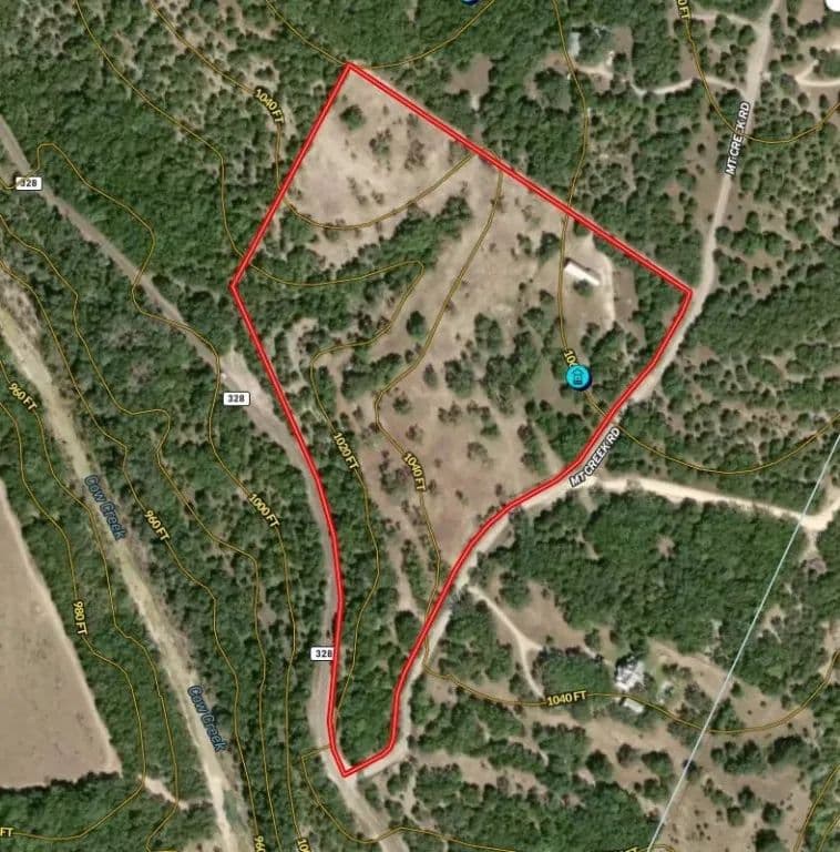 This is a great opportunity to purchase a turnkey recreational property near the Balcones Canyonlands just north of Austin, TX. This 20-acre Hill Country property is fenced and includes a furnished cabin, four-bay carport w/small workshop, water well, septic, and electricity. It is located in the large-acreage Mountain Creek Ranch subdivision. The cabin comes complete with current furnishings and is move-in ready. This small acreage subdivision was created in the 1980s and it is rare to get an opportunity to purchase two contiguous 10-acre tracts, especially with the included improvements. The property is perfect for a weekend getaway or live in the cabin while building your forever home. The ranch is surrounded by the Balcones Canyonlands National Wildlife Refuge. Located just 7 miles north of Lake Travis, east of Marble Falls, west of Lago Vista, and just on the southeastern edge of Burnet County. The area is well known for its spectacular Hill Country views and scenic countryside and this property has it all. The Mountain Creek Ranch Subdivision is managed by a property owners association and some restrictions protect all property owners. Includes over 1400 feet of frontage on Mountain Creek Road and over 800 feet of frontage on County Road 328 (Cow Creek Road). There is roughly 60 feet of elevation change across the property with the cabin and best building sites at the highest elevation. The cedar trees have been well managed and there is a nice mixture of open space and trees. IMPROVEMENTS - 682 sqft cabin built in 2005, water well, electric, and septic. Four-bay carport with small workshop. The cabin includes a living area, a complete kitchen, and 1 bedroom/1 bath, and includes furnishings. Completely fenced, cross-fenced, and ready for horses, goats, or maybe a longhorn or two. There is a great potential homesite near the cabin with long-range views across the property.