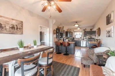 This beautiful 17 acre ranch is located right off the highway for a convenient location outside of town. Featuring three pastures and 1 being hay yielding that comes already fenced and cross fenced this is perfect land for starting a small horse ranch or farm. The land comes with a pond located on the property for naturally watering your livestock or animals. The quaint sand cozy house is a 2 story, 3 bedroom and 2 full bathroom ranch house that has a very nice layout. It features all new roofing, windows and siding with commercial grade appliances! There is also a small office space for recreational or business use with the availability of fiber optic internet hookup. Located just outside the house is a perfect 1500 sqft combination of an open shop and 4 horse stalls; three of which have turnouts. Check out this awesome property to experience the beauty of it all for yourself.