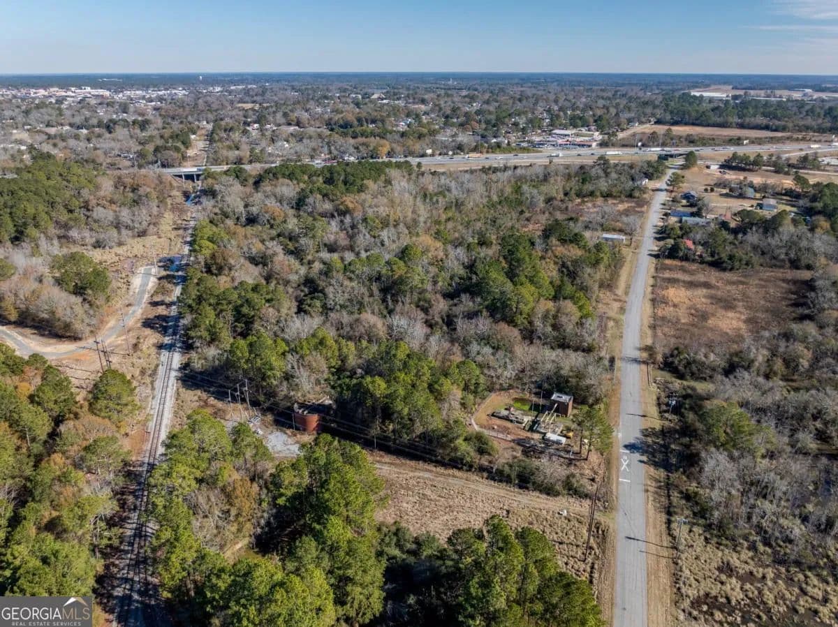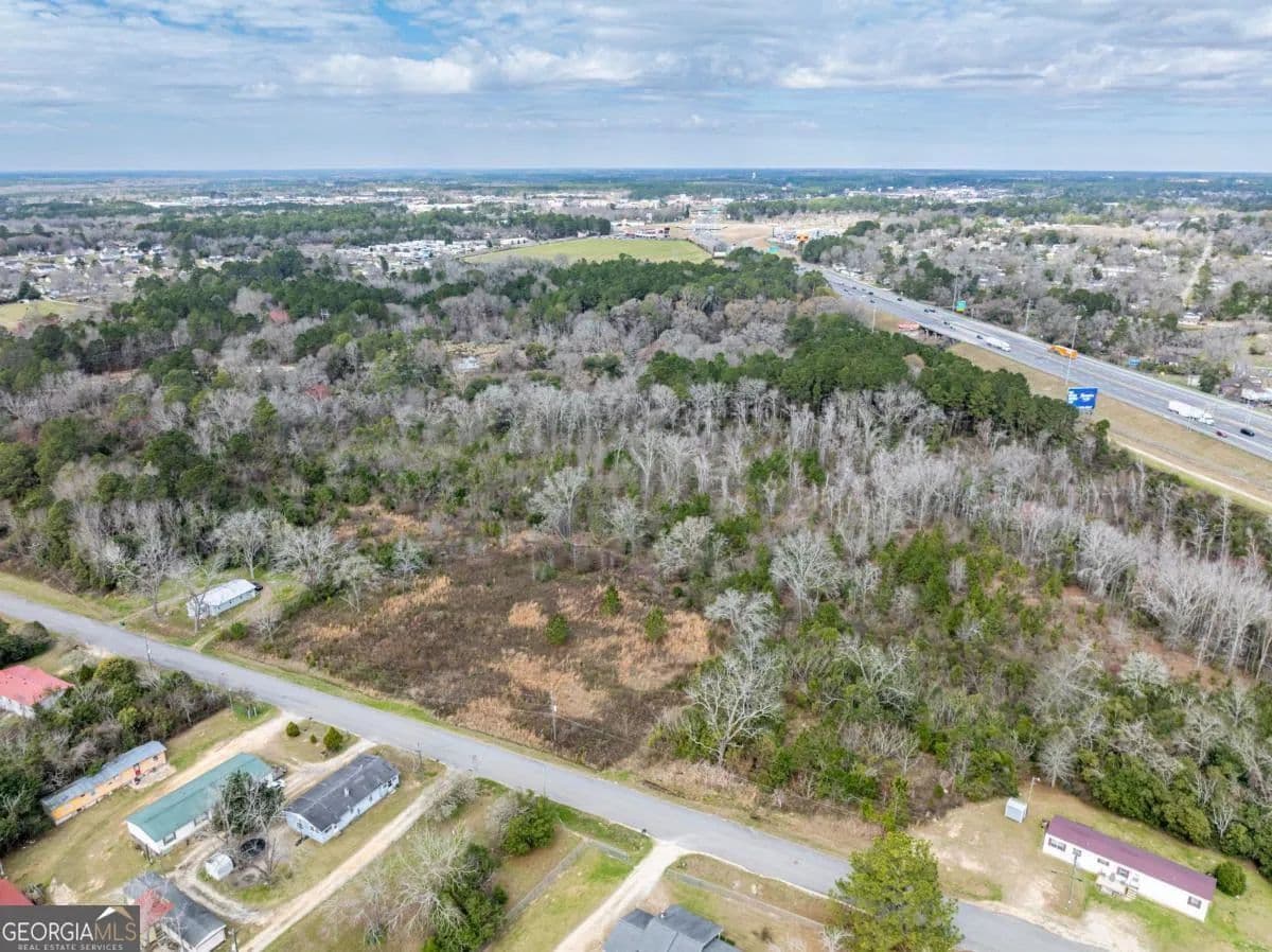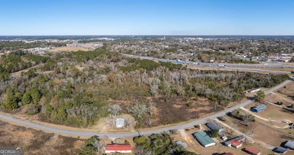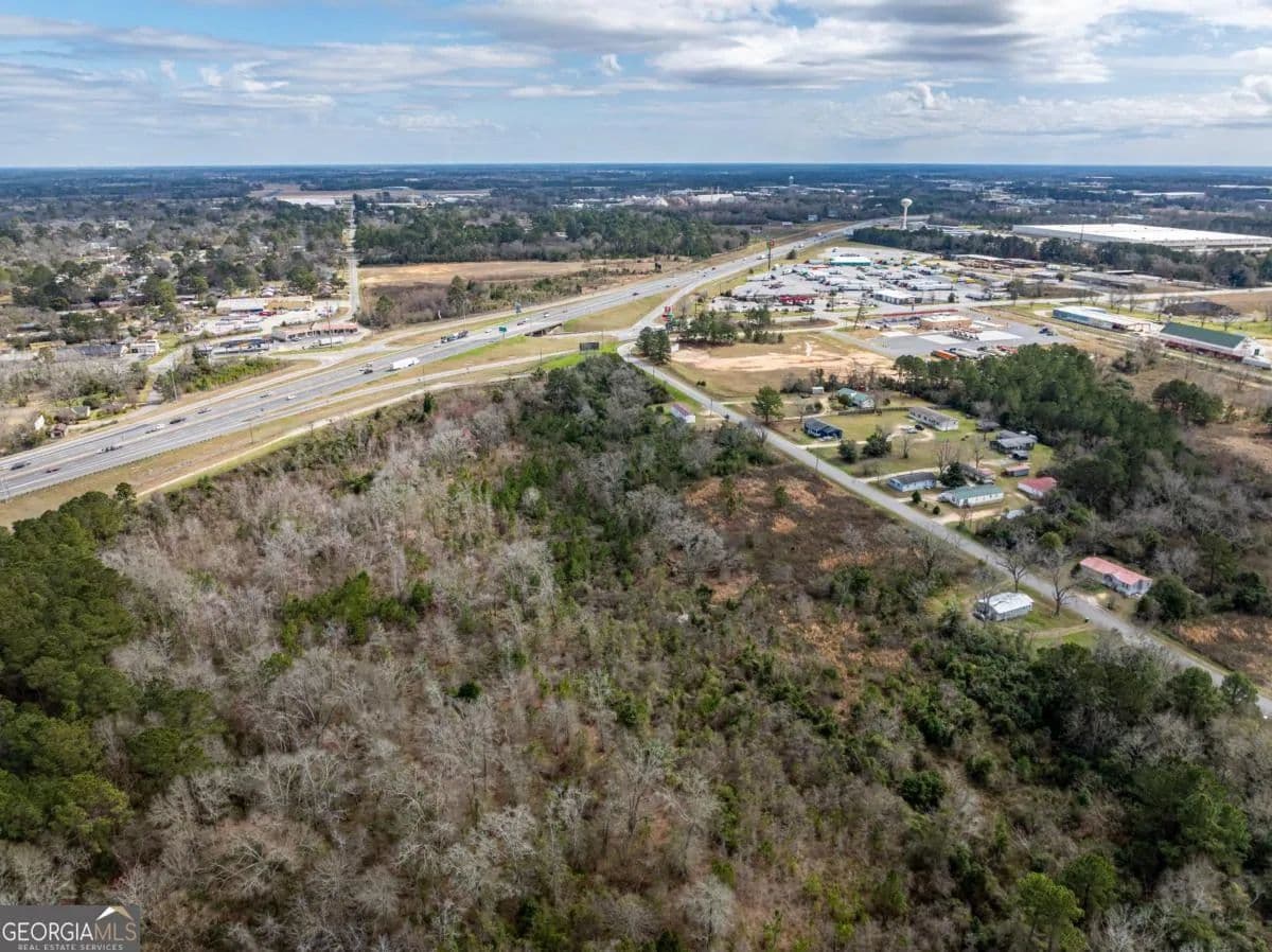 A large commercial lot, with high visibility from I-75, is located in Tifton, approximately 2.5 hours south of Atlanta and 45 minutes north of Valdosta, off Exit 60. It features road frontage connecting two major thoroughfares, HWY 319 S and I-75, along with paved road access on Golden Road and Jeffery Rd, as well as railroad frontage along the west property line. The property is equipped with electric, city water, and city sewer, with a nearby Georgia Power Hub. It is zoned Ag, allowing for various uses such as an RV park, mobile home park, solar farm, manufacturing, and self-storage.