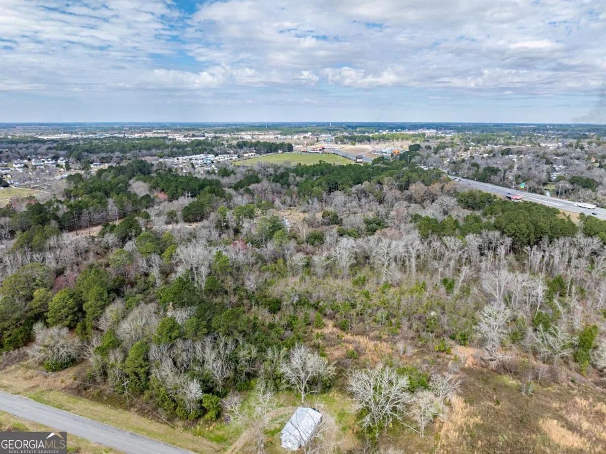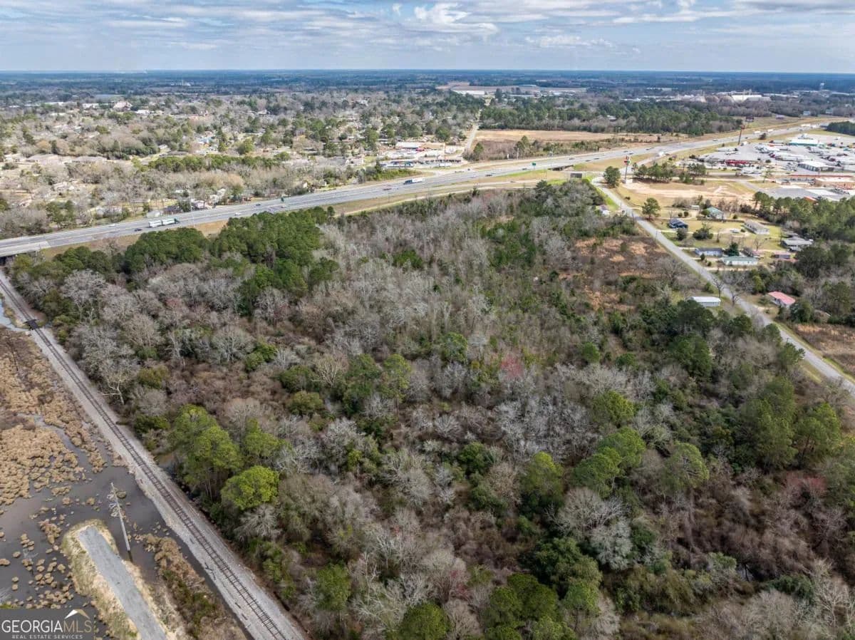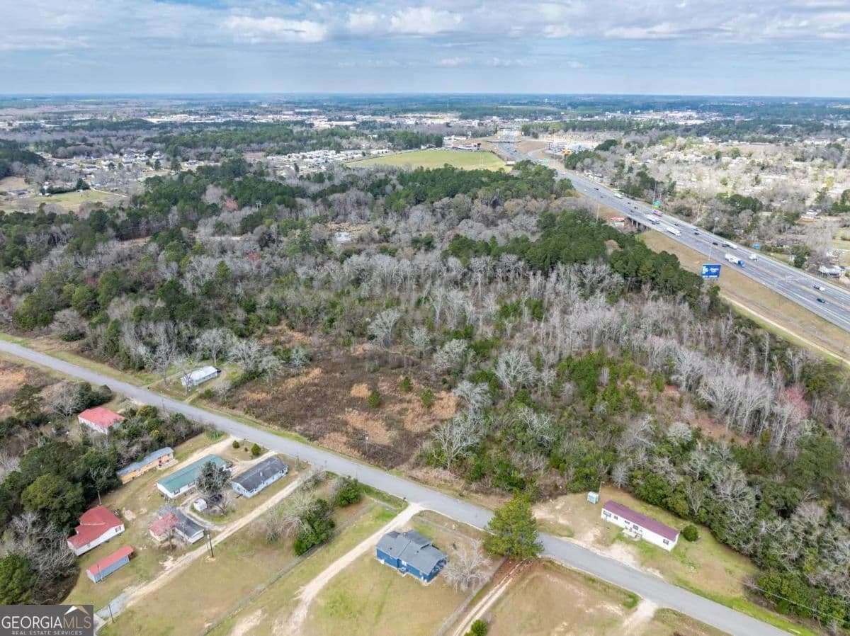 A large commercial lot, with high visibility from I-75, is located in Tifton, approximately 2.5 hours south of Atlanta and 45 minutes north of Valdosta, off Exit 60. It features road frontage connecting two major thoroughfares, HWY 319 S and I-75, along with paved road access on Golden Road and Jeffery Rd, as well as railroad frontage along the west property line. The property is equipped with electric, city water, and city sewer, with a nearby Georgia Power Hub. It is zoned Ag, allowing for various uses such as an RV park, mobile home park, solar farm, manufacturing, and self-storage.