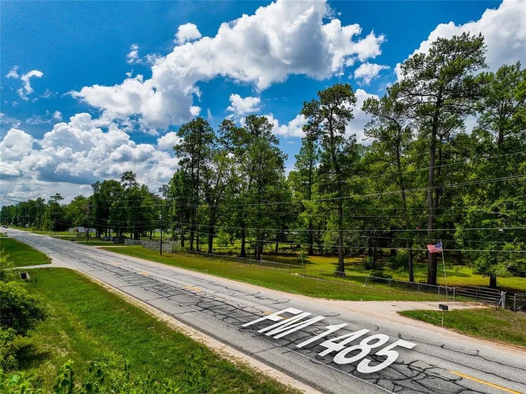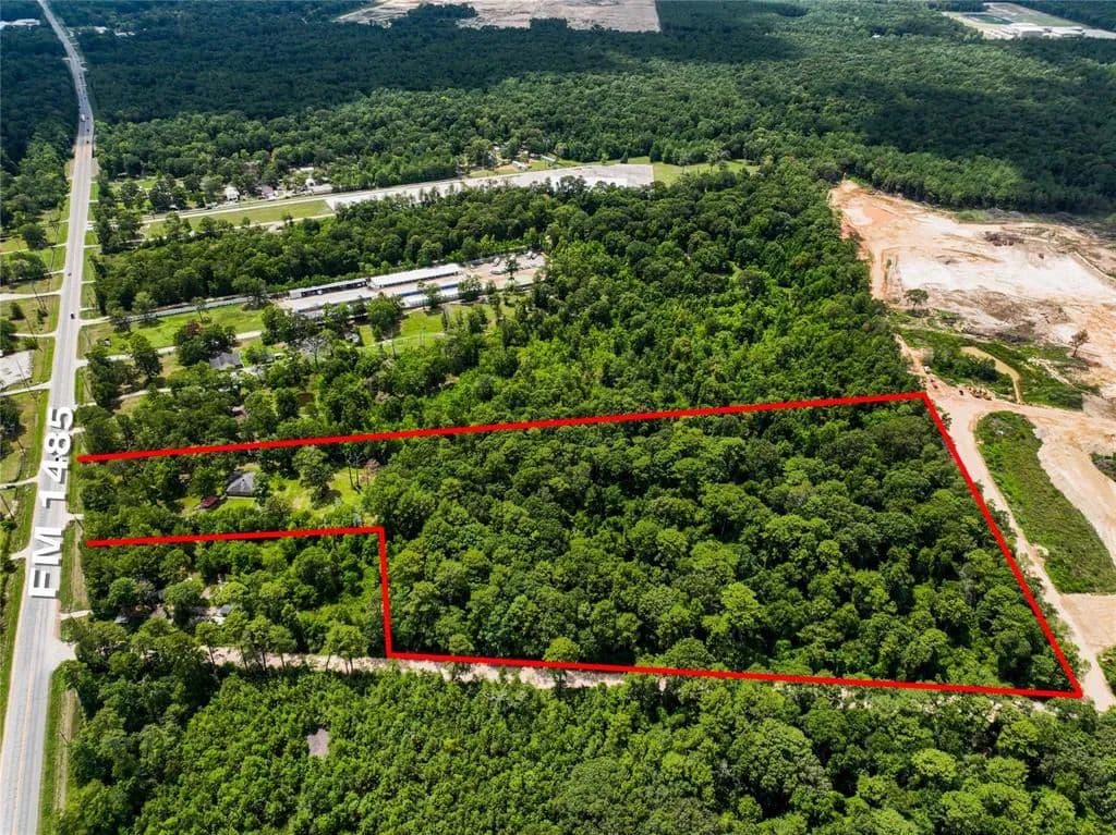 UNRESTRICTED land OPPORTUNITY -- located on NEARLY 10 ACRES with direct frontage to FM 1485. COMMERCIAL or RESIDENTIAL development. Just minutes from Hwy 59 with convenient access to Hwy 242, FM 1314, and a quick commute to Grand Parkway. 2 acres on the frontage and nearly 8 acres in the back of property with access off of Firetower Rd. Land features private well and septic, private entrance to front of property, 2 acres with chain link fencing and back property with barbed wire fencing. Make your commercial or residential dreams come true with this RARE find. Super low tax rate and NO HOA or MUD.