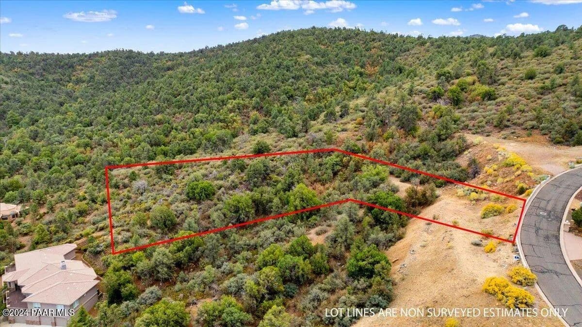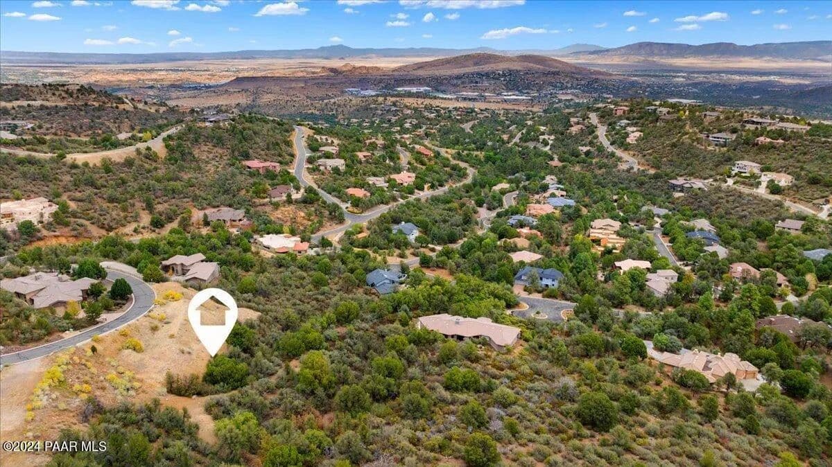 This 1.46 acre lot borders the Prescott National Forest. It has outstanding, long-distance views of Mountains and city along with an exceptional, buildable, flat section. Imagine privacy, wildlife and natural beauty. It is a premiere lot at the top of The Ranch. BONUS- owner has architectural plans completed as well. See renderings in photos. Call listing agent, Carrie Lancon for details and information.