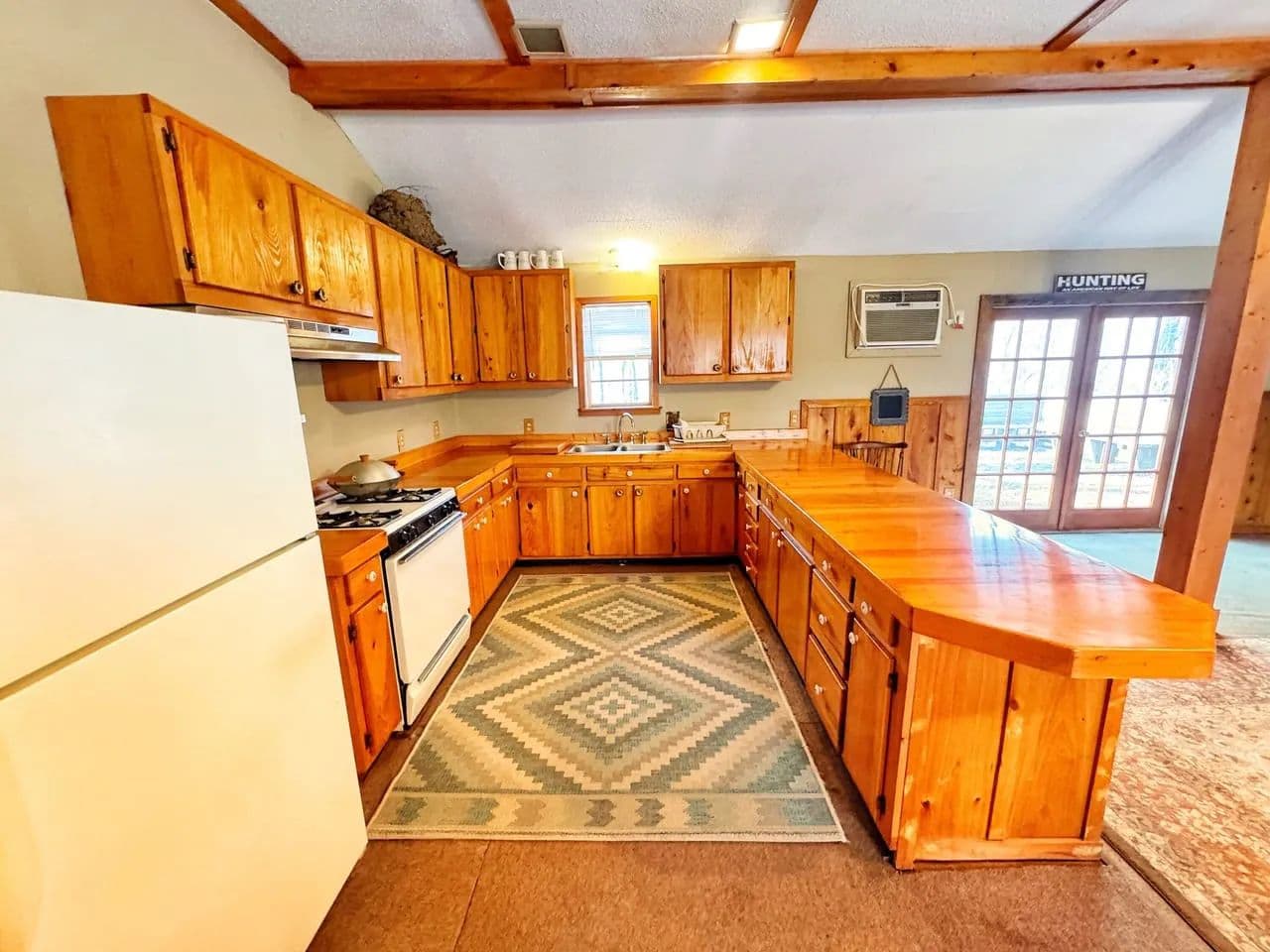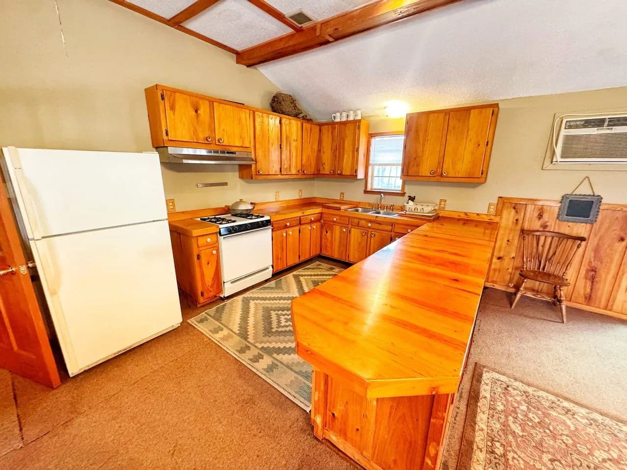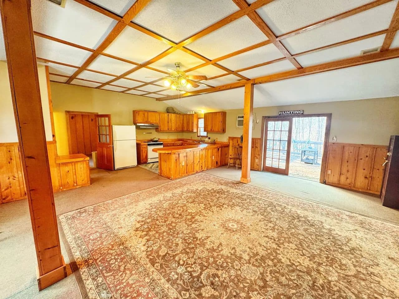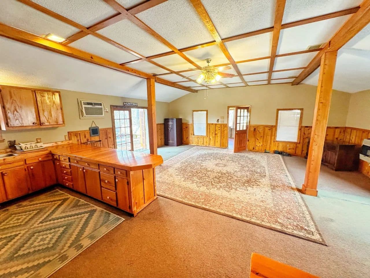 Kitchen overlooking a large, open living area—perfect for gathering after a day outdoors