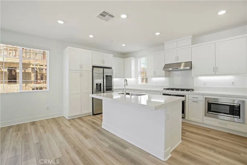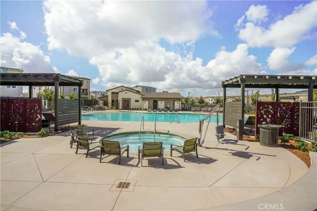 This exquisite, brand-new single-family home exemplifies contemporary living at its finest. Boasting 3 bedrooms, 2.5 bathrooms, and an expansive open floor plan, this beautifully designed residence is packed with features sure to impress. The heart of this home is found on the second floor, where a modern kitchen awaits, featuring sleek cabinetry, quartz countertops, a spacious island, and stainless steel appliances. The open-concept design seamlessly blends the kitchen, living, and dining areas, creating a warm and inviting space perfect for entertaining or relaxing with family. A powder room on this level adds extra convenience. The master suite, located on the upper floor, is a true sanctuary. It features a generously sized walk-in closet and a spa-like en suite bathroom with dual sinks and an oversized shower. Each bedroom throughout the home is designed with comfort in mind, featuring recessed lighting and thoughtful details. The home has community pool view and the charming private front yard, a perfect spaces for enjoying your morning coffee. A convenient laundry room and an attached two-car garage make everyday living a breeze. Located in the master-planned community of Rancho Mission Viejo, Flora homes offer access to a host of resort-style amenities, including pools, a community garden, fitness centers, nature trails, and even a lagoon pool. You'll also enjoy convenient proximity to shopping, dining, entertainment, and major freeways, making commuting and exploring the best of South Orange County effortless.