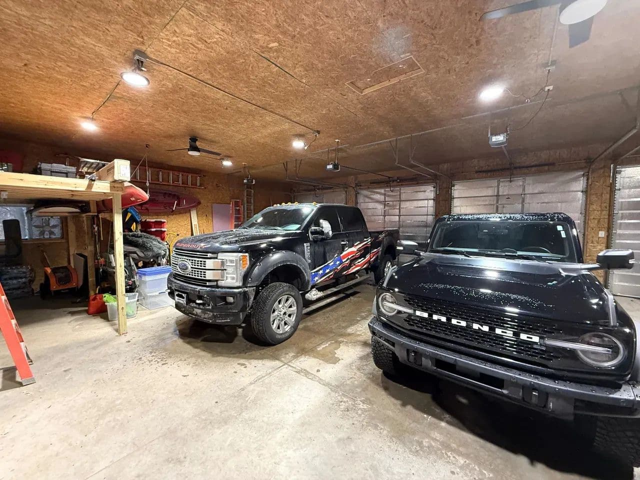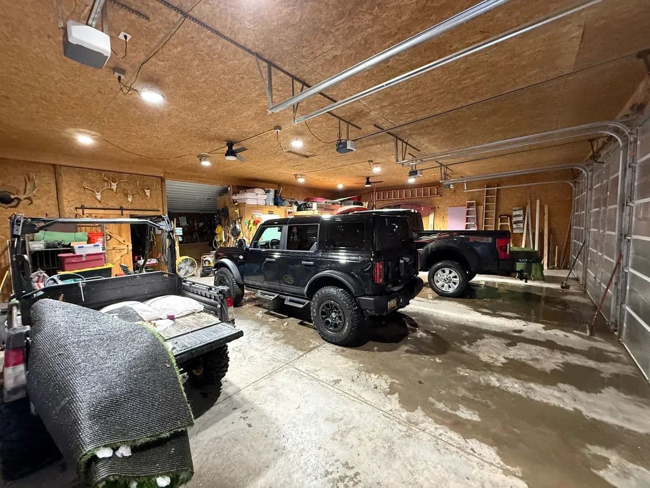 48' x 48' heated 4-bay garage with 8' x 16' kickout