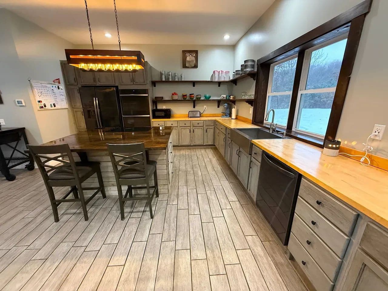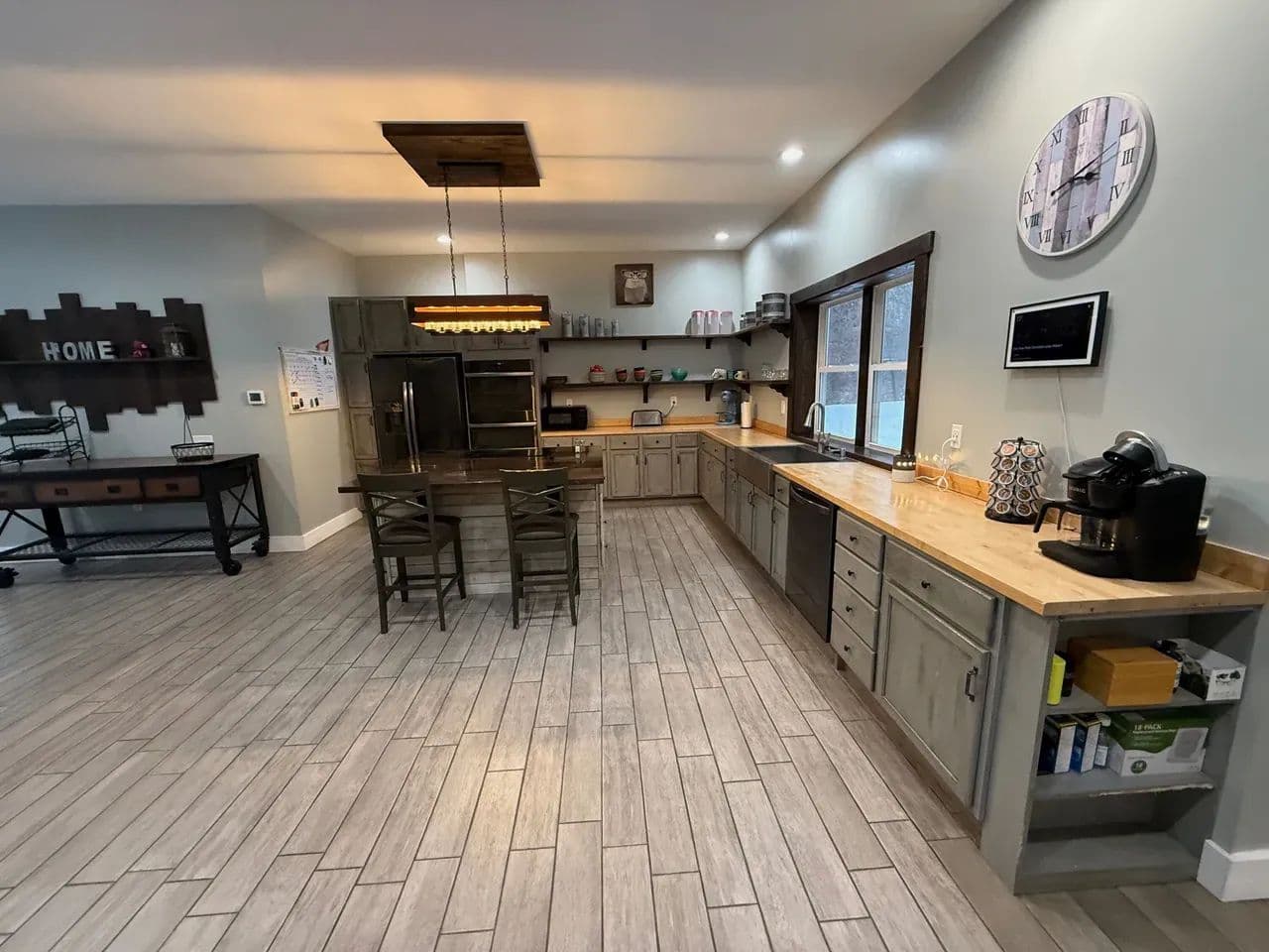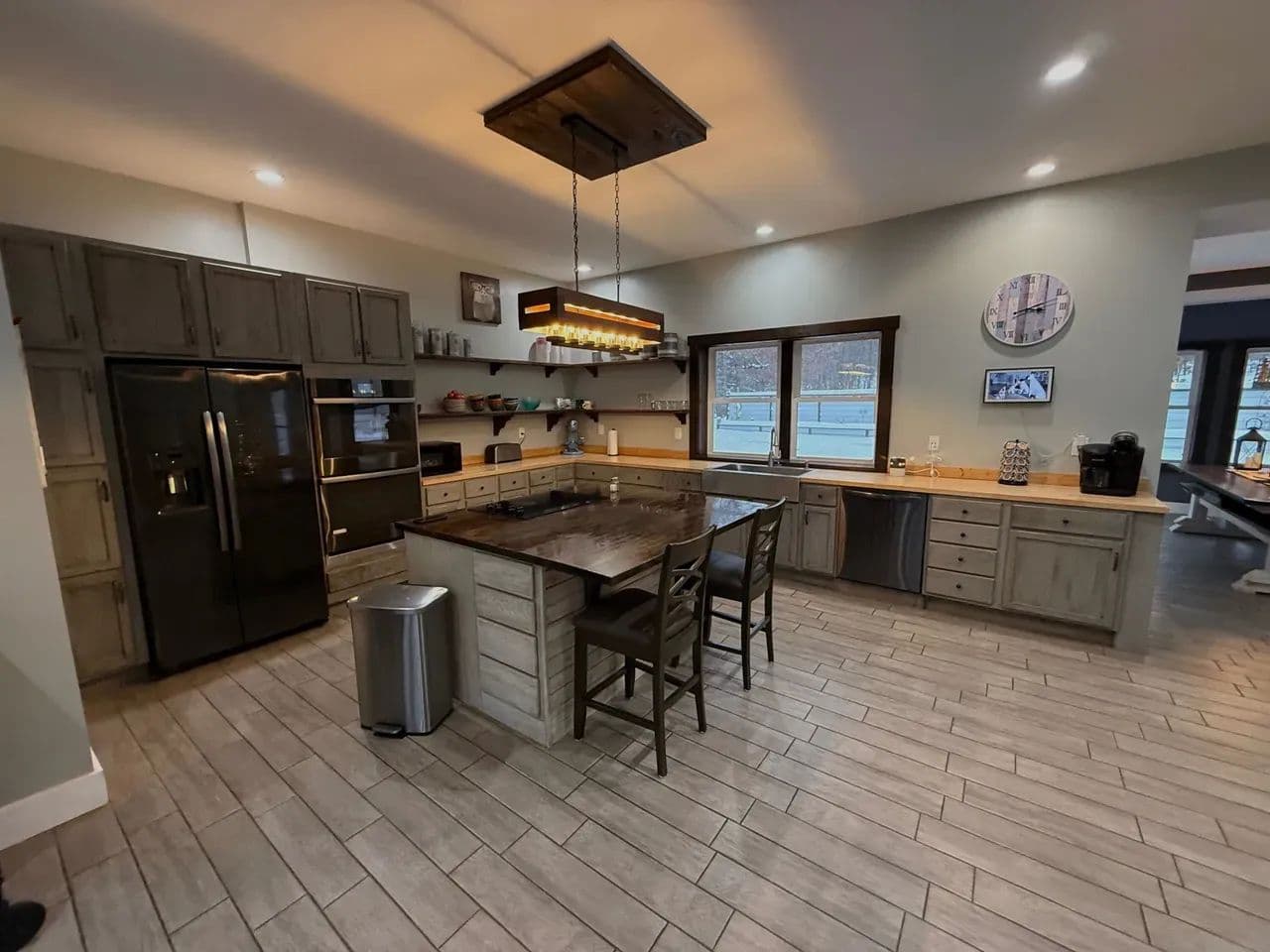 Open-concept kitchen, dining, and living areas
