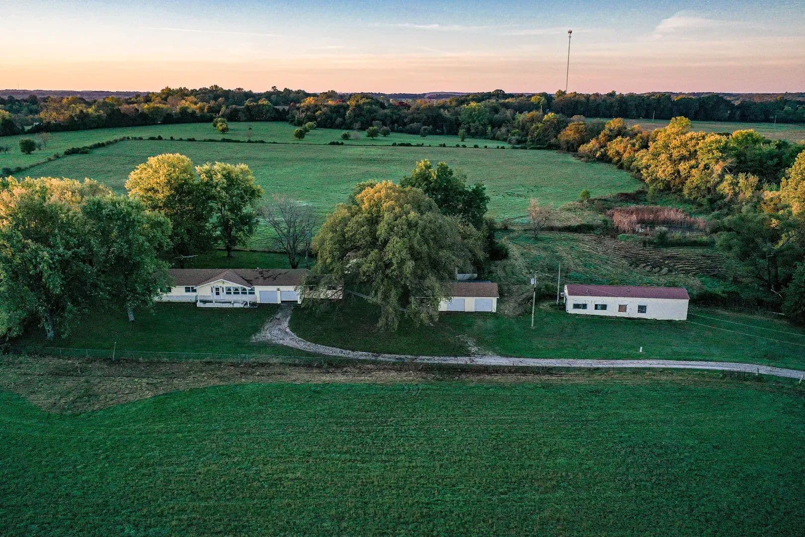 25± acres near Washburn, Missouri with a 3-bed, 2-bath home, newer roof, attached garage, and large kitchen. Flat fenced pastures produced 142 bales last year and include a pond and multiple outbuildings. Well, septic, and owned propane tank. Minutes to Cassville, Bentonville, and Roaring River. Great remodel potential and usable acreage.yes