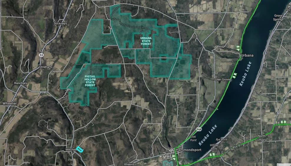 This recreational land and building lot consists of 9.5 acres located in Urbana NY in the Southern Finger Lakes Region.