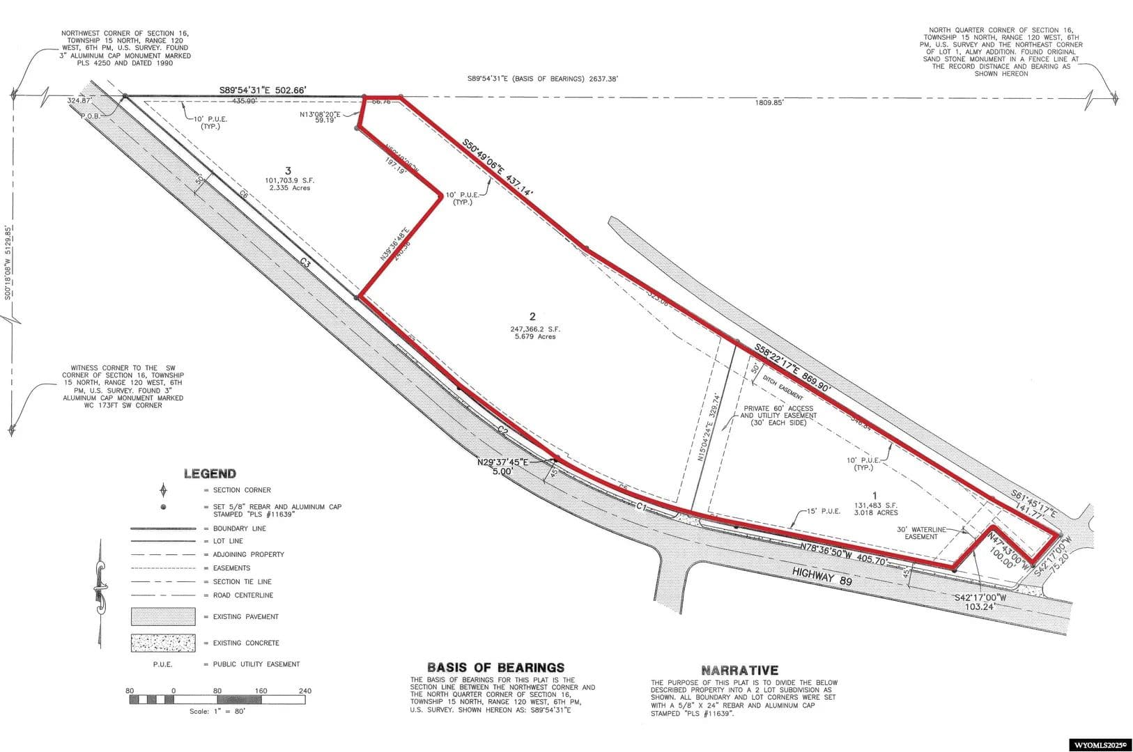 We're pleased to present two parcels of prime commercial land totaling 8.7 acres off Highway 89 in Evanston, Wyoming. Positioned along a major travel corridor with excellent visibility and access, this property is ideal for a variety of commercial uses including retail, hospitality, service stations, or mixed-use development. With close proximity to I-80 and steady traffic counts, the location offers strong regional and local exposure. One of the parcels is currently grandfathered in as a non-conforming residential use and is currently leasing land to a mobile home on a month to month basis that can be terminated at the owners discretion. Strategically located near residential neighborhoods, schools, and recreational amenities, this site offers a rare opportunity for investors and developers to secure a high-exposure location in one of Evanston’s key growth areas.