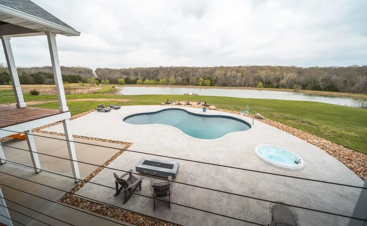 Dawnview Estate is located close to Truman Lake and minutes from Sterett Creek Marina! This stunning 4,400 m/l sq ft home offers 2x6 exterior walls with spray foam insulation, heated bathroom floors, and accent lighting inside and out. The kitchen boasts a granite countertop, quartz island, and a hidden giant walk-in pantry. Also a 40x60 shop with a 16x40 lean to and 400m/l sqft living quarters. Outside, enjoy a pool and spa area less than two years old and a large pond stocked with Bass and panfish, and fruit trees have been planted as well. The property also includes, a hidden safe room accessed through a bookcase, and breathtaking sunrise and sunset views to watch while enjoying the sights and sounds of nature. Property to be surveyed prior to closing.