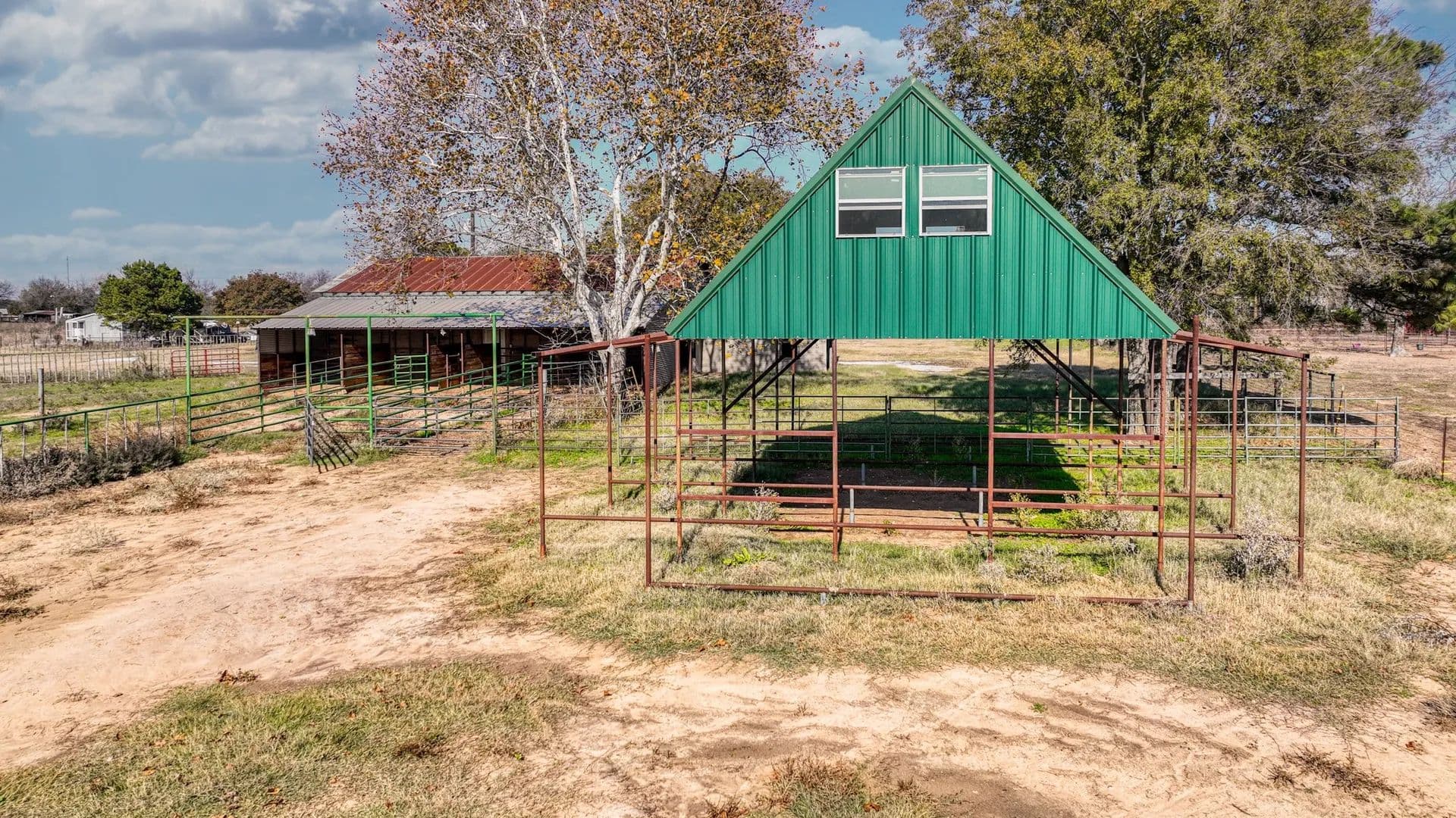 Experience true peace and privacy on your own ranchette. Set on 6.988 secluded acres with a pond, this property is perfectly equipped for your chickens, horses, and country lifestyle. Thoughtfully improved, it features a 1,900± SF workshop, a barn with four run-ins, and a lighted, fully piped roping arena framed by a stunning backdrop of mature live oak trees. The land is fenced and cross-fenced with top rail and cedar staves, and water spigots are conveniently located throughout the pastures. An 800± SF framed structure—already outfitted with water and electricity—is ready to become a guest home, office, or bunkhouse. The property is also well-capable and positioned outside city limits with an existing AG exemption in place. The charming all-stone home with a metal roof offers the perfect blend of coziness and character. Sip your morning coffee on the peaceful front porch, then unwind in the evening with a glass of wine on the back porch overlooking the wide-open pasture after a night of roping with friends. Inside, the warm, inviting kitchen and family room flow seamlessly together and lead to the primary suite, complete with its own ensuite bathroom featuring a classic claw-foot tub. Upstairs, you’ll find two generously sized bedrooms full of natural light and rustic charm. A property filled with character, functionality, and the quiet beauty of country living—you won’t want to leave.