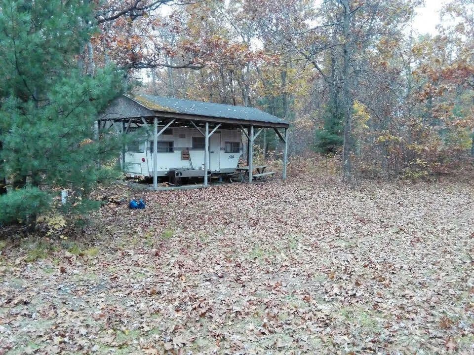 Nice 5-acre parcel with frontage on two roads Steinberg on the north side of the property and Bosschem road on west side of the property. This location is close to everything Manistee County has to offer for outdoor activities. As a bonus there is an OFF THE GRID cabin that is ready to use 524 sq ft and also including an outdoor shower a shed and two campers. There is no water well, septic or electric on the property. Property is being sold as is.