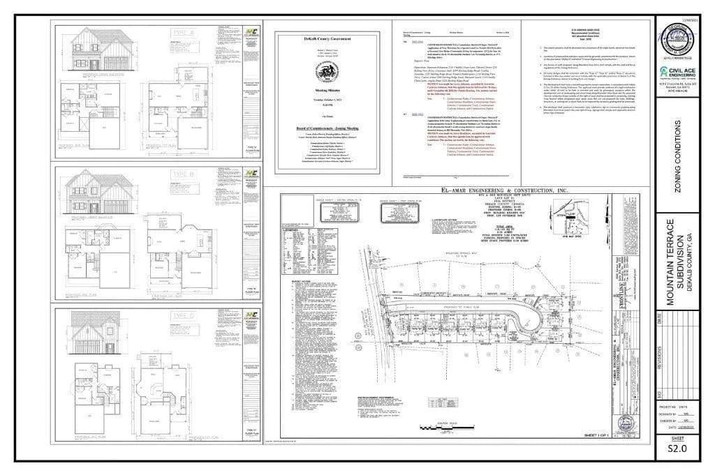 This is the development opportunity serious builders compete for. Located just minutes from Memorial Drive and major retail corridors, this prime 2.71-acre tract is fully approved for a 9-home gated subdivision and positioned in a market where new construction, within a 2-mile radius, is selling between $450K–$500K. This creates an excellent environment for builders seeking steady buyer demand and strong resale values. The property includes a total of **2.71 acres, comprising the main parcel at 883 Mountain View Dr and an adjacent 0.53 portion at 875 Mountain View Dr. All acreage is combined into one offering for a 9-home approved subdivision. The site offers both privacy and desirability for future homeowners. All easements have already been recorded with DeKalb County, ensuring clear development and utility placement. Convenience is unbeatable — the property is approximately 3.5 miles from Walmart, Publix, and The Home Depot, offering quick access to daily essentials and major building supplies. Recently rezoned from R75 to R60, the property includes a comprehensive development package, allowing builders to move efficiently through the next steps: Full Survey Legal Description Three Architectural Home Plans (A, B & C) Sewer Easement Documentation Rezoning Approval Ready for Land Disturbance Permit (LDP) Submission All development documents are available for immediate review, ensuring a seamless due diligence process. With buildable land becoming increasingly scarce and new construction sales in the area remaining consistently strong, this is a rare opportunity to secure a near–shovel-ready project in a high-demand pocket of Stone Mountain. Opportunities like this do not last. Bring your builder and break ground with confidence.