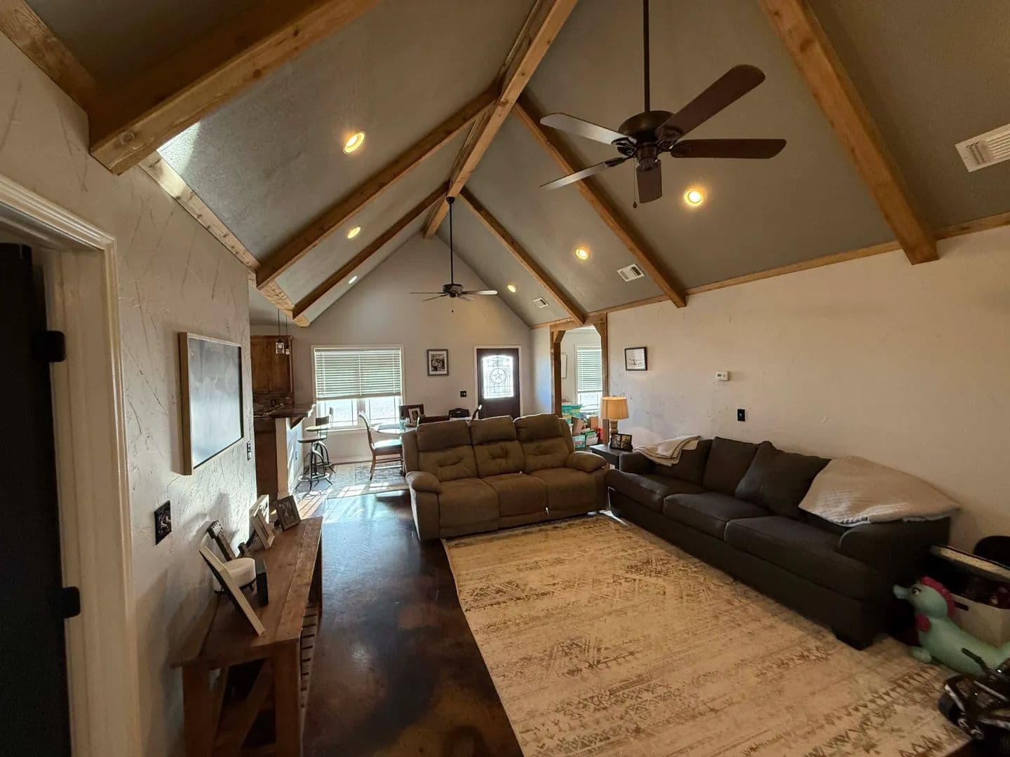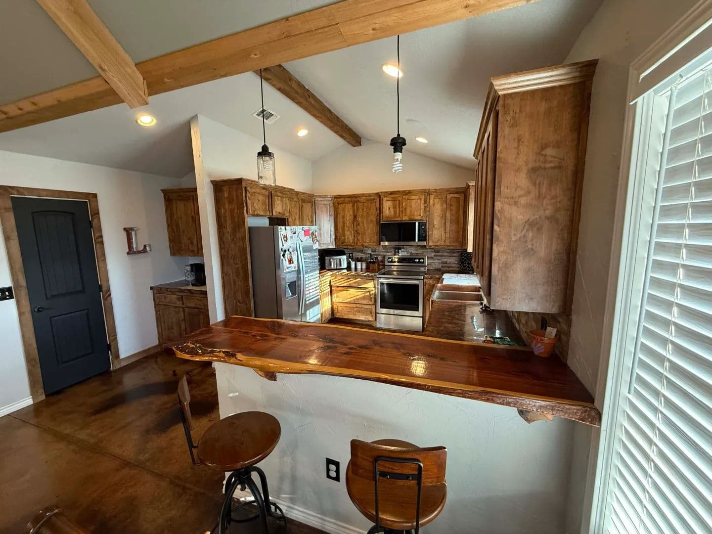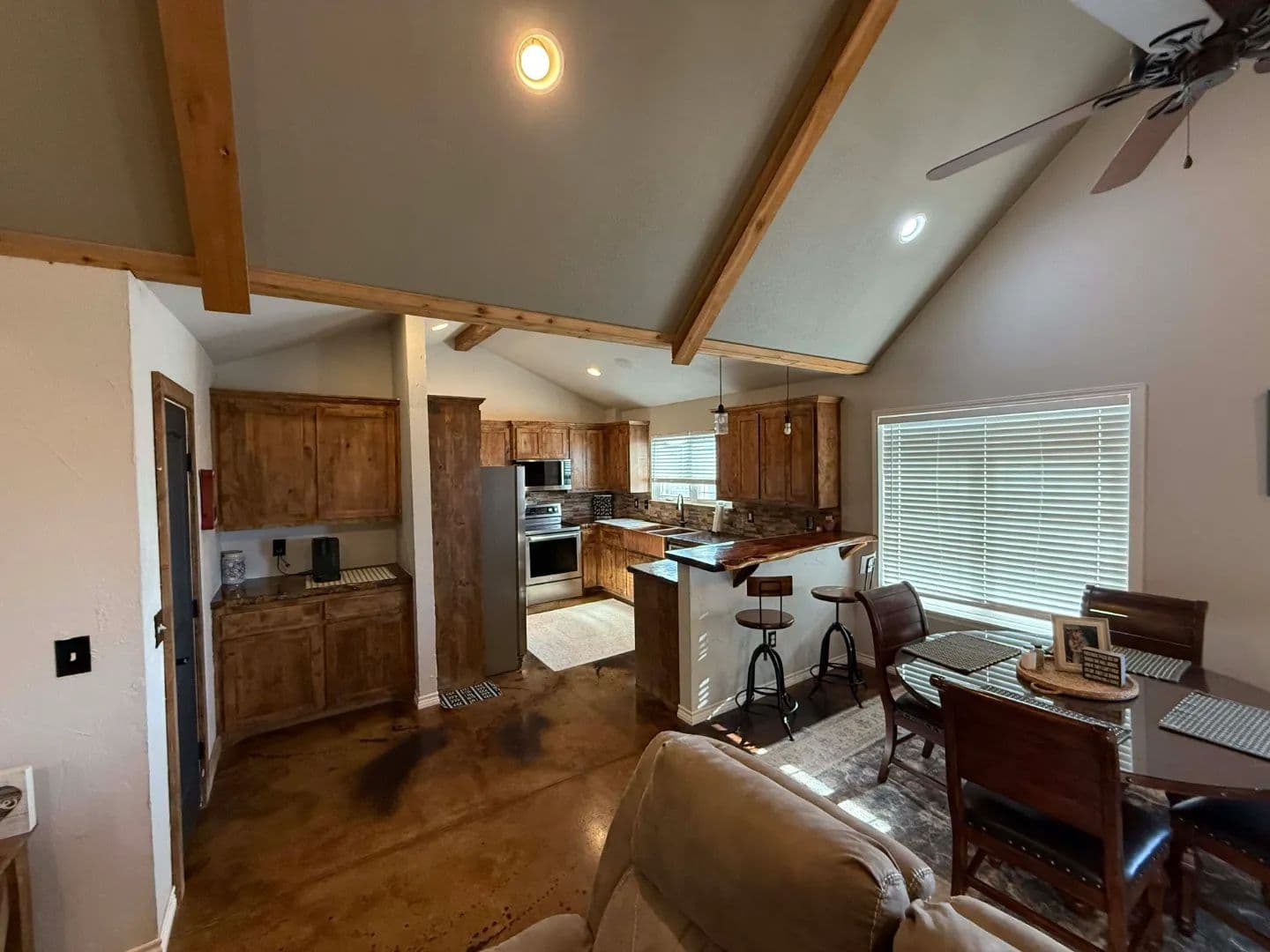 Main House: 1,600 sq.ft. of living area and an 800 sq.ft. garage. All very modern finishes with carpeting in the bedrooms and stained concrete throughout the remainder of the home. See pictures for more information.