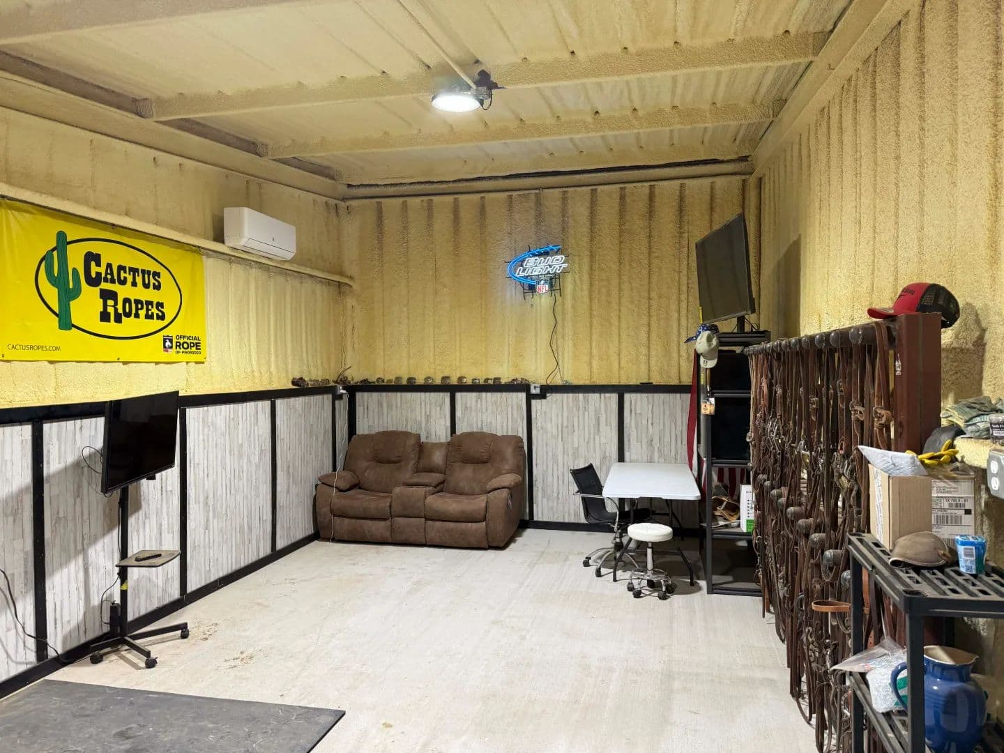 Horse Barn: The most recent improvement on the property is a 60’ x 60’ covered horse barn. The barn has multiple runs which extend outside and offers concrete walkways for dry saddling and maintenance. The tack room is spray foam insulated to be rodent tight and weather friendly. Electricity is present and a round pen sits adjacent to the barn.