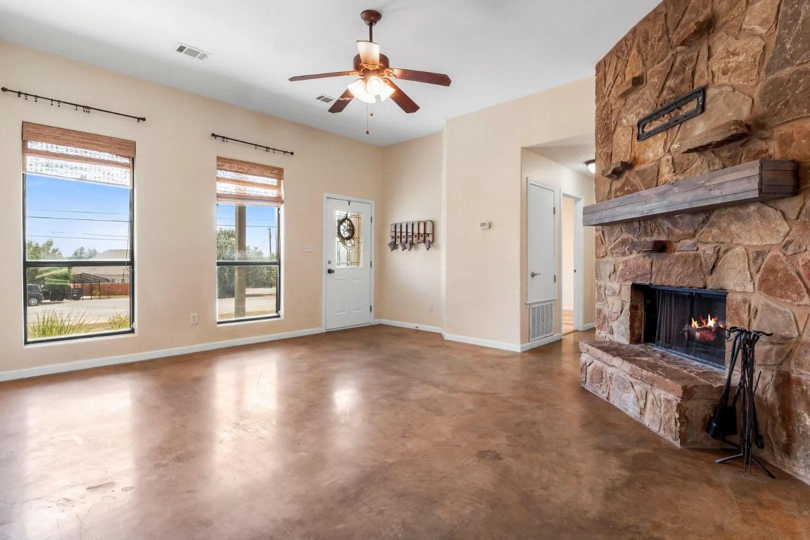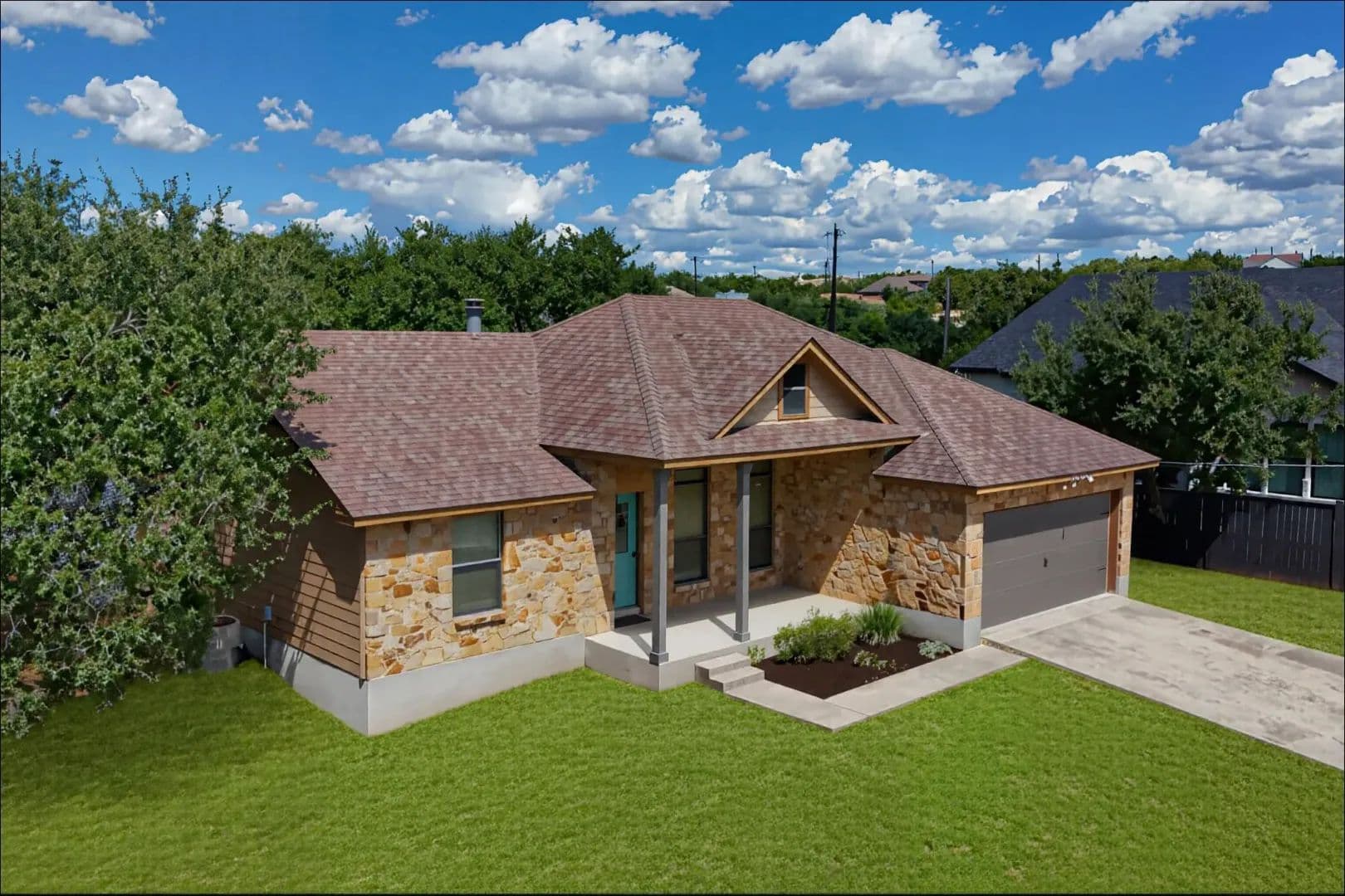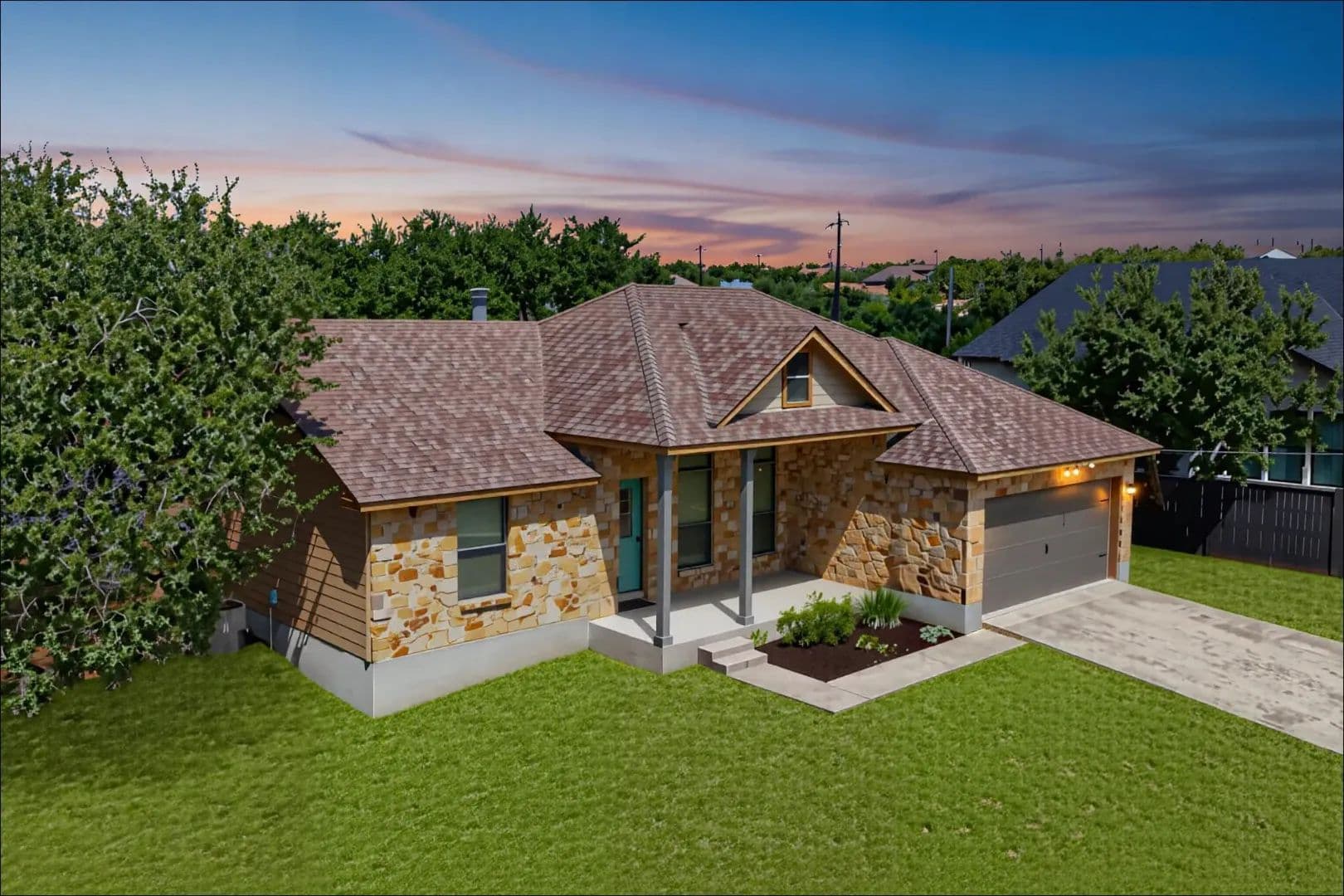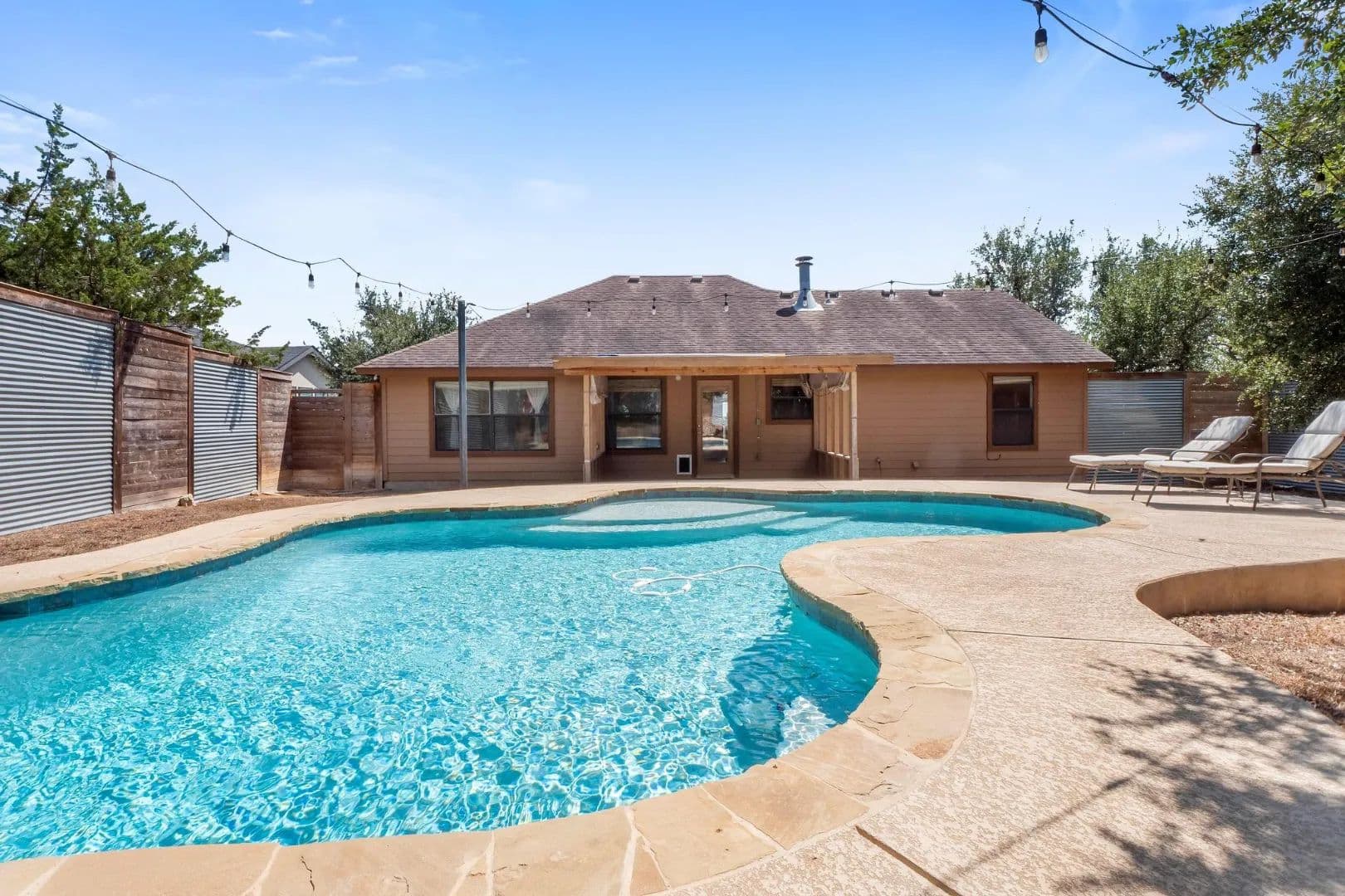 Lender paid rate buy-down to 4.99% first 2 yrs!! An idyllic home situated in the highly sought-after community of Deer Creek Ranch has so many beautiful things to offer! Many trees adorn this property. Nestled on a spacious double .44 acre lot and located towards the back of the neighborhood. When you walk up, you have a charming front porch. Perfect for watching the sunrise with your favorite cup of coffee. This home features three bedrooms, two bathrooms, and 1,239 square feet of spacious living space. Your living room has high ceilings and stained concrete floors. The focal point is the wood-burning fireplace. It features floor-to-ceiling stone and a rustic mantle. Perfect for curling up with a good book. Your living room opens up seamlessly into your kitchen. Your kitchen features granite countertops, a peninsula-style breakfast bar, and a breakfast area. Your spacious primary is perfect for unwinding & relaxing. Your ensuite features an extended double vanity, a large walk-in shower with a seat, & WIC. Your second bedrooms are generously sized. Your secondary bathroom features a single vanity and a tub/shower combination. Venture to the backyard. You have a large covered patio. The highlight of this property is the pool, which features a waterfall. Imagine taking a cool plunge on a hot summer day. The main house has a water filtration system, stained concrete, and wood floors. NO CARPET! . You also have an income-producing guest house, which features 975 square feet, a spacious kitchen, a living area, one bedroom, one bathroom with laundry, a covered patio, a carport, and is privately fenced. It features a walk-through gate to the pool, currently rented for $1,500 per month (includes water, septic & mowing). This home is situated in the highly sought-after area of the Lake Travis acclaimed school district. Great location, playground, community lake, low tax rate, close to main roads, restaurants, shopping, Hill Country Galleria, and so much more.