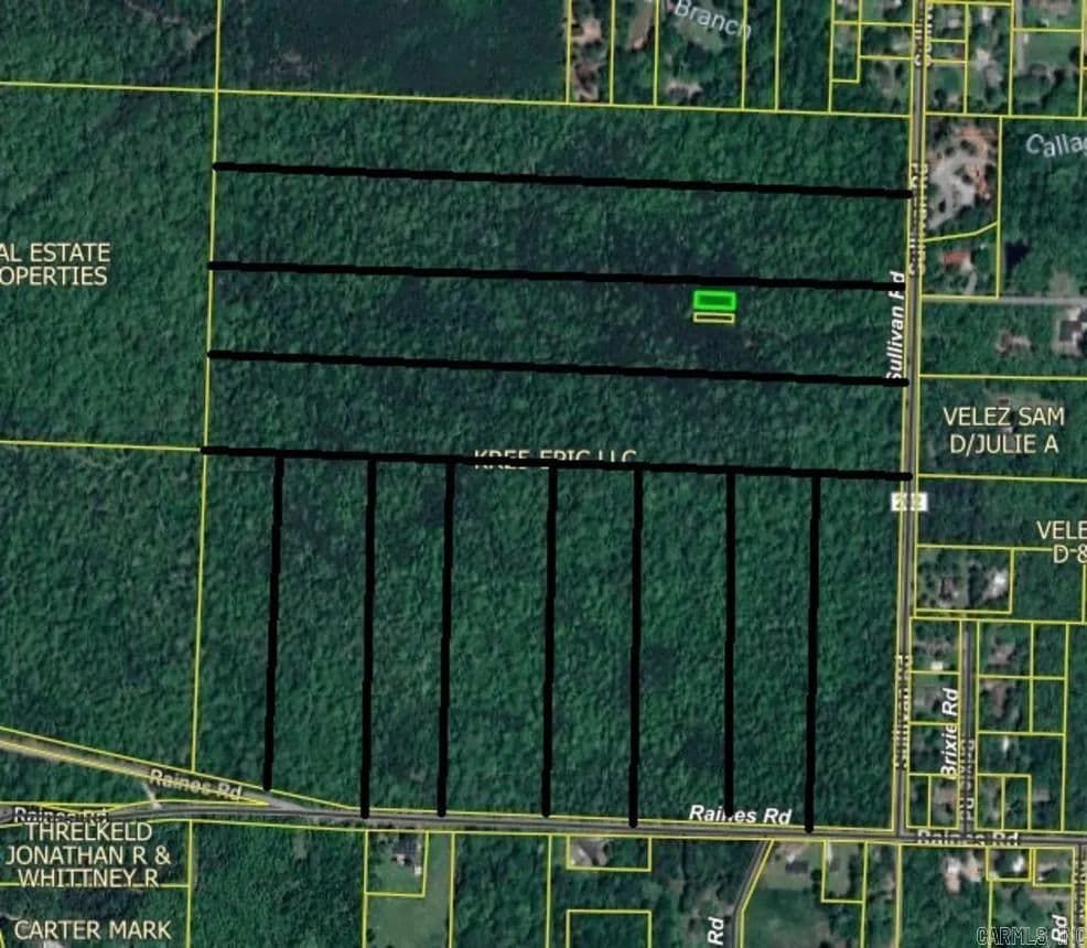Property has 154+/- acres in Pulaski County, Arkansas. There is a platted Sub-division dated 1916 covering the property. The Seller is abandoning the old sub-division and breaking the property into 4 20-acre tracts, 6 10-acre tracts, and 1 14+/- acre tract. The 20-acre tracts are on Sullivan Road, have 330 ft of frontage, are priced at $400,000. The 10-acre tracts and the 14+/- acre tract are on Raines Road and are priced at $250,000 and $350,000+/- respectively. When the first tract sells, the Seller will immediately petition the County of Pulaski to abandon the old sub- division and when this is approved, a survey will be conducted to break up the entire parcel into the mentioned tracts. Buyers will receive a metes and bounds survey for their respective tracts. All offers will be contingent on getting the old sub-division abandoned and getting the final survey.